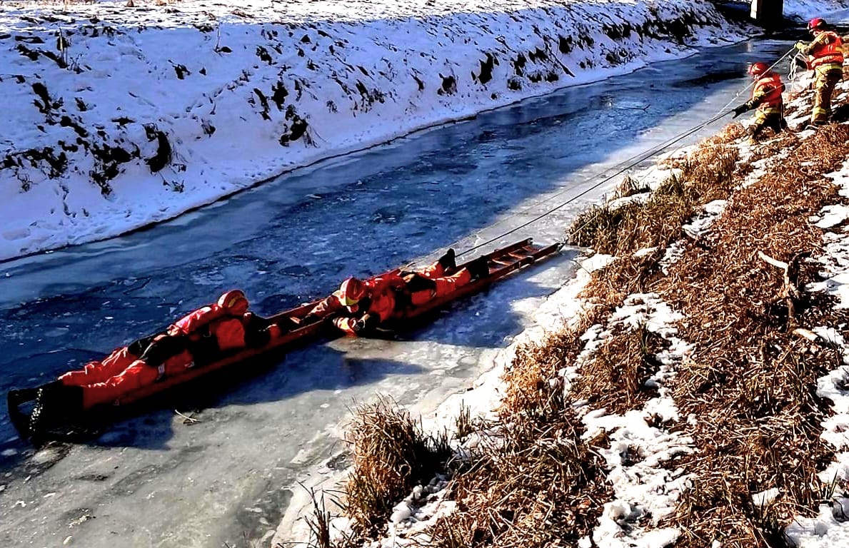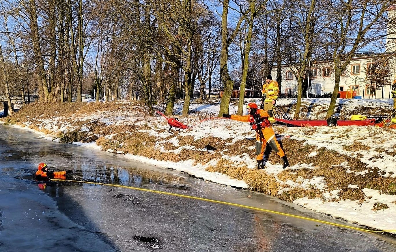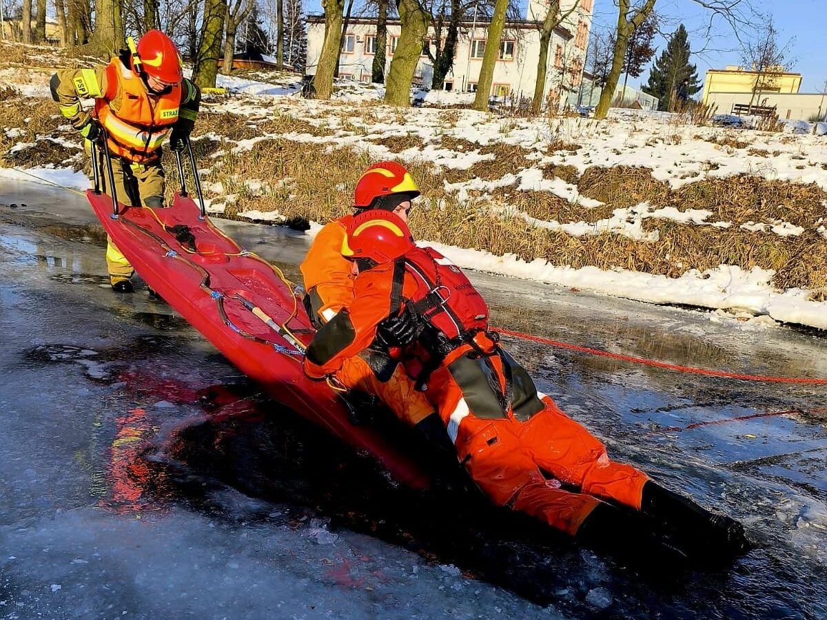Dzisiaj na rzece Ochni w Kutnie odbyły się efektowne ćwiczenia kutnowskich strażaków z zakresu ratownictwa na lodzie.
