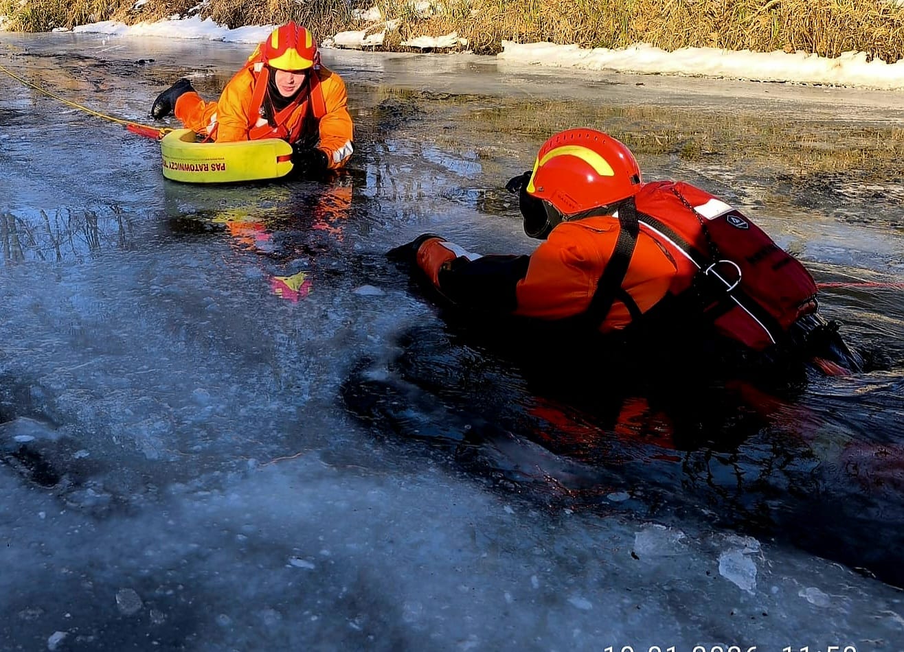 — Celem ćwiczeń jest przećwiczenie technik ewakuacji poszkodowanego, pod którym załamała się tafla lodu, doskonalenie umiejętności posługiwania się sprzętem do ratownictwa wodnego i lodowego, umiejętności ewakuowania osoby poszkodowanej poza lód oraz poruszanie się po lodzie przy użyciu podstawowego sprzętu do ratownictwa lodowego — relacjonuje mł. kpt. Krzysztof Orłowski, oficer prasowy Komendy Powiatowej Policji w Kutnie.