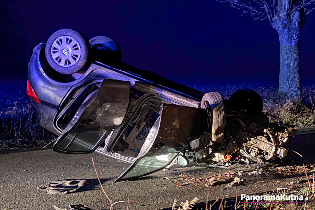 — 66-letni kierujący Oplem nie dostosował prędkości do warunków panujących na drodze, zjechał do przydrożnego rowu, uderzył w drzewo i dachował. Był nietrzeźwy, miał ponad promil w wydychanym powietrzu. Został przewieziony do szpitala w Kutnie — powiedziała Panoramie aspirant Daria Olczyk, oficer prasowy Komendy Powiatowej Policji w Kutnie.