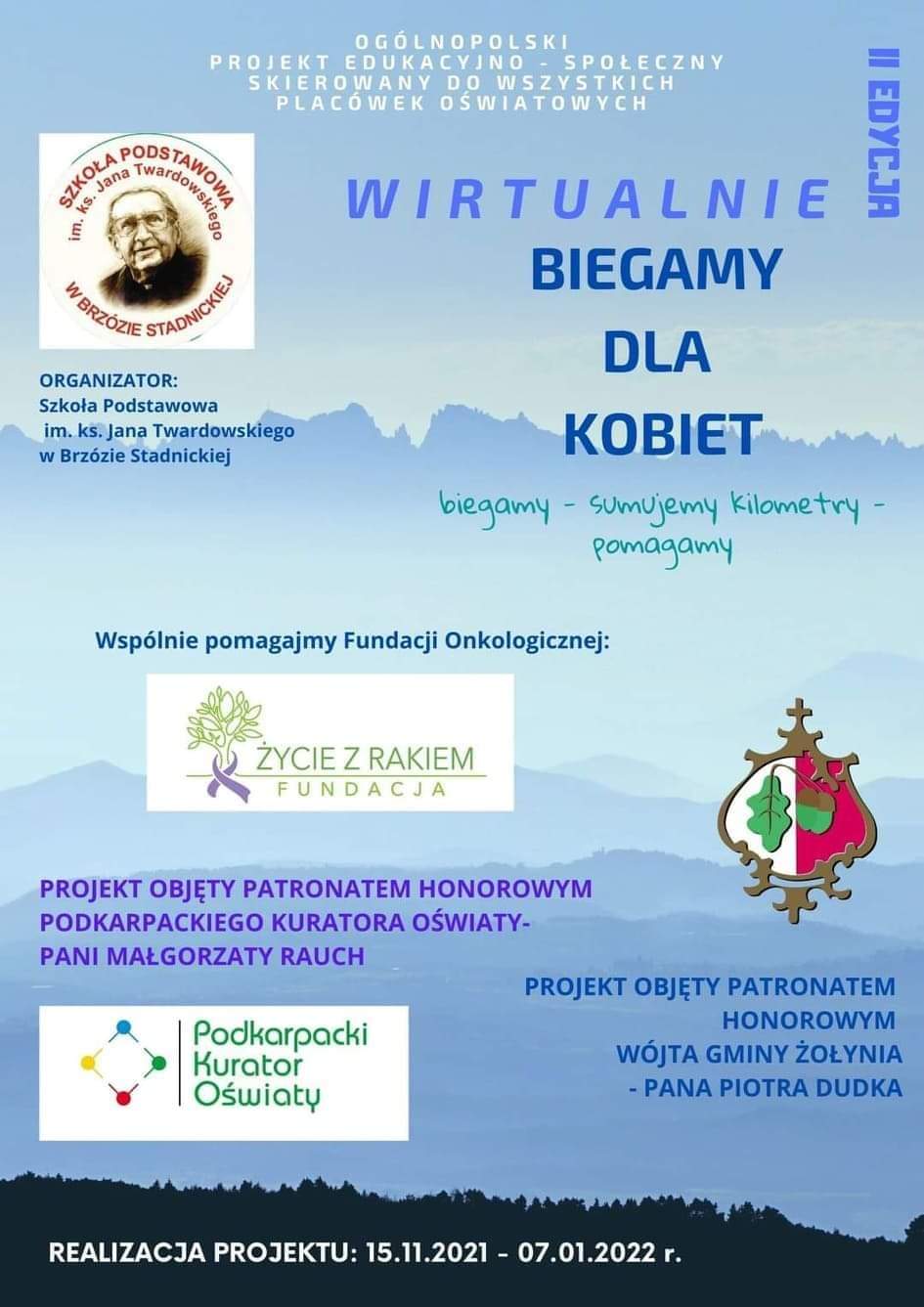Pani Agnieszka Bielawska za pośrednictwem redakcji serdeczne podziękowania składa Panu Bartoszowi Serendzie, który sam przebiegł dystans 100 km potrzebny do zakwalifikowania się do akcji. Dzięki swoim wpisom na portalu Facebook promując „Wirtualny Bieg dla Kobiet” Pan Bartosz Serenda zachęcił do wzięcia udziału w akcji również swoich znajomych: Panią Agnieszkę Ptaszyńską, Panią Joannę Zielińską i Pana Damiana Wojtowskiego, którym też serdecznie dziękujemy.