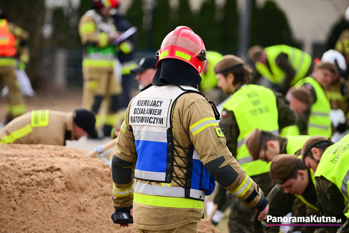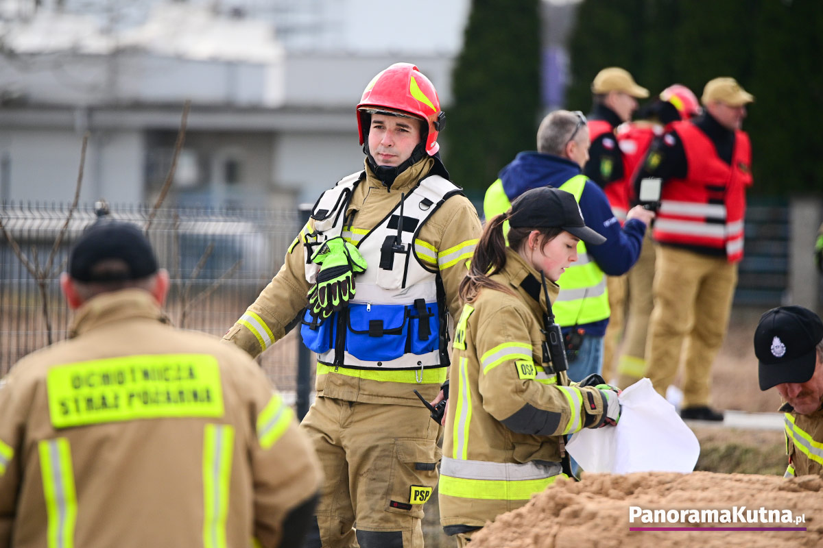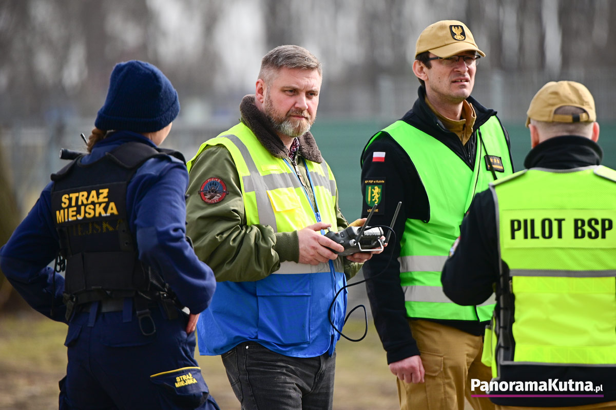 Mł. kpt. Krzysztof Orłowski, oficer prasowy KP PSP w Kutnie, wyjaśnia, że strażacy oraz współpracujące służby ćwiczyli między innymi procedury zabezpieczania wałów przeciwpowodziowych, uszczelniania konstrukcji przy wykorzystaniu folii przeciwpowodziowych oraz budowę zabezpieczeń z worków z piaskiem. Równolegle prowadzono działania z zakresu ratownictwa poszukiwawczo-ratowniczego, polegające na poszukiwaniu osoby zaginionej w rejonie rzeki. Ważnym elementem epizodu było doskonalenie umiejętności wykorzystania bezzałogowych statków powietrznych podczas działań ratowniczych, w tym zamawiania strefy R oraz przesyłania obrazu z BSP PSP do SDŁ Komp.