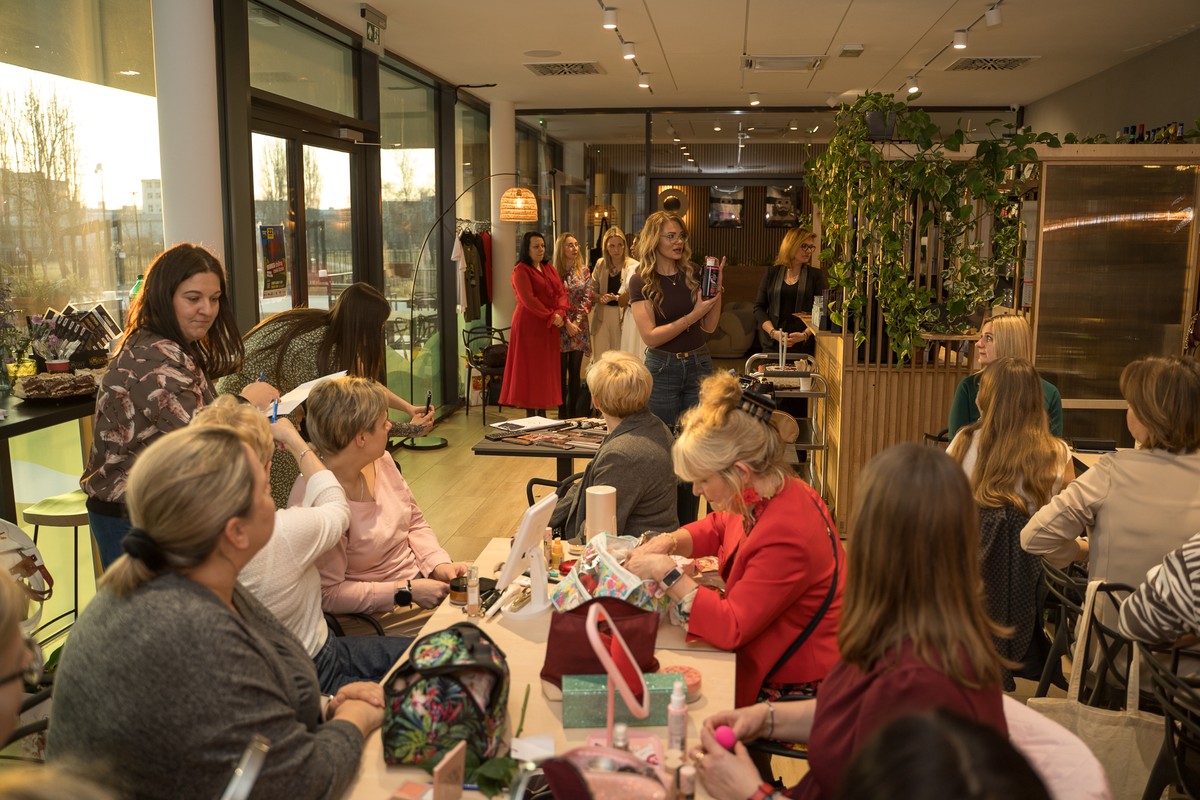 Popołudnie rozpoczęło się od warsztatów makijażu, które poprowadziła Monika Wesołowska. Uczestniczki mogły zobaczyć, jak przy pomocy prostych technik i codziennych kosmetyków podkreślić swoje naturalne atuty. Nie chodziło o spektakularną metamorfozę, lecz o drobne triki, które pomagają poczuć się pewniej na co dzień. Była to praktyczna lekcja kobiecej pewności siebie, z dużą dawką uśmiechu i swobodnej atmosfery.