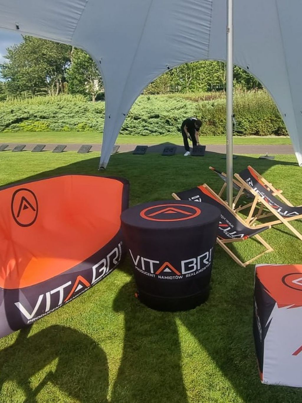 VITABRI oferuje pełne portfolio systemów wystawienniczych – od bram pneumatycznych, przez flagi, ścianki i trybunki, po meble dmuchane, podłogi modułowe oraz kostki – z nadrukami wysokiej jakości i zestawami transportowo-montażowymi ułatwiającymi pracę w terenie.