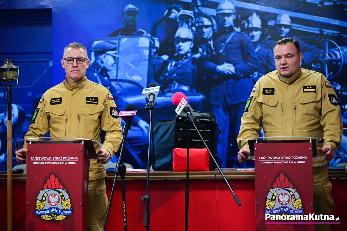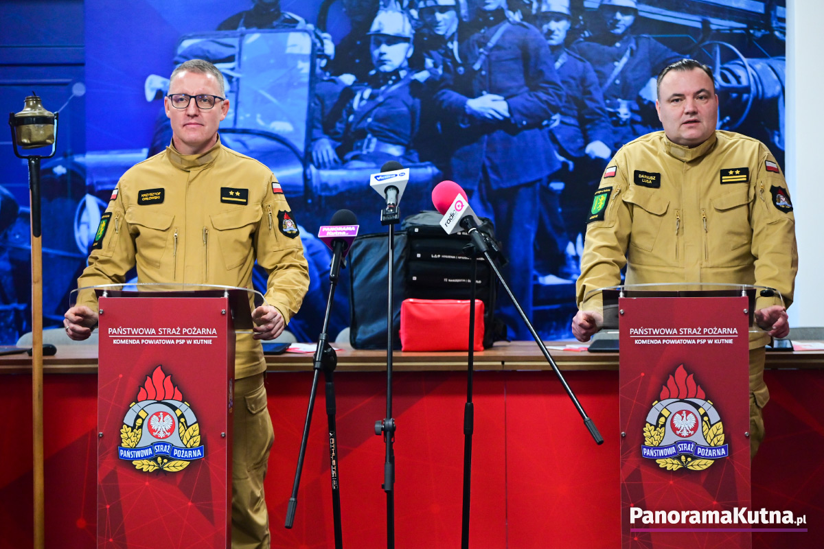 W konferencji udział wzięli brygadier Dariusz Lusa, komendant KP PSP w Kutnie oraz młodszy kapitan Krzysztof Orłowski, oficer prasowy KP PSP w Kutnie.