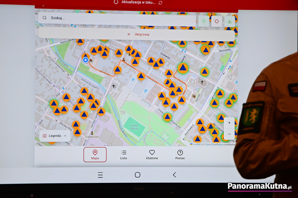 Funkcjonowanie aplikacji zaprezentował Krzysztof Orłowski, oficer prasowy PSP w Kutnie. Wyjaśnił, że aplikacja wyznacza najkrótszą trasę do punktu schronienia trzema metodami: poprzez mapę w telefonie, trasę w samej aplikacji oraz kompas działający offline po wcześniejszym pobraniu danych.