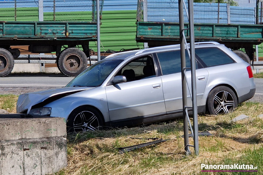Do bardzo groźnie wyglądającego zdarzenia drogowego doszło dziś rano w Kutnie. Pijany obcokrajowiec rozbił auto o betonową studnię.