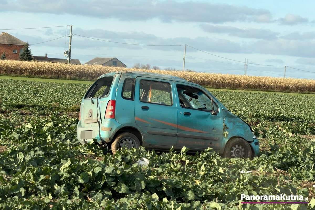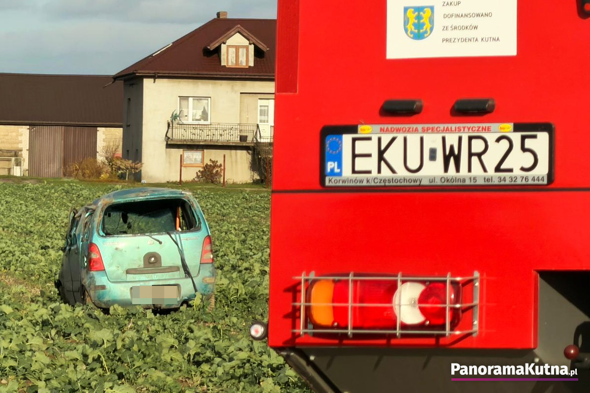 Około godziny 13:30 do dyżurnego Komendy Powiatowej Państwowej Straży Pożarnej w Kutnie wpłynęło zgłoszenie o poważnym wypadku. W miejscowości Kamienna w gminie Oporów z nieznanych przyczyn z drogi wypadł samochód i dachował. Pojazdem podróżowało dwóch mężczyzn, a jeden z nich z obrażeniami został przetransportowany do szpitala w Kutnie.
