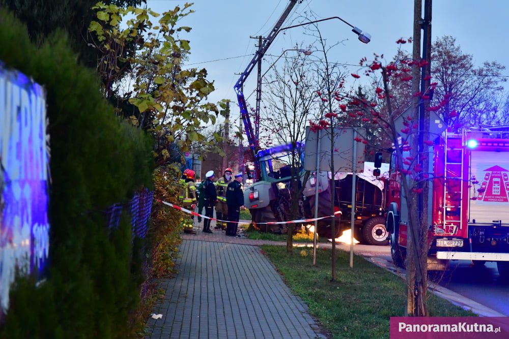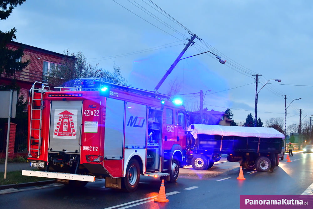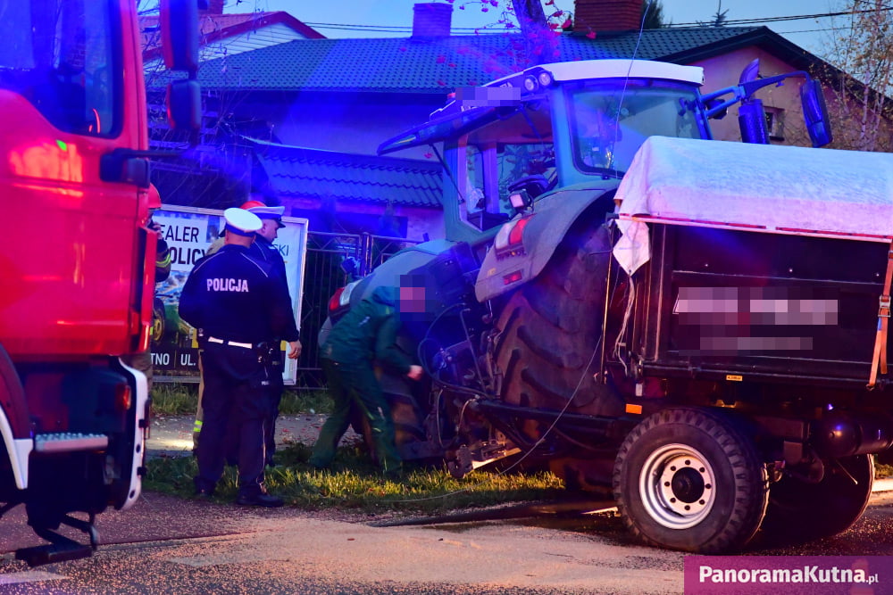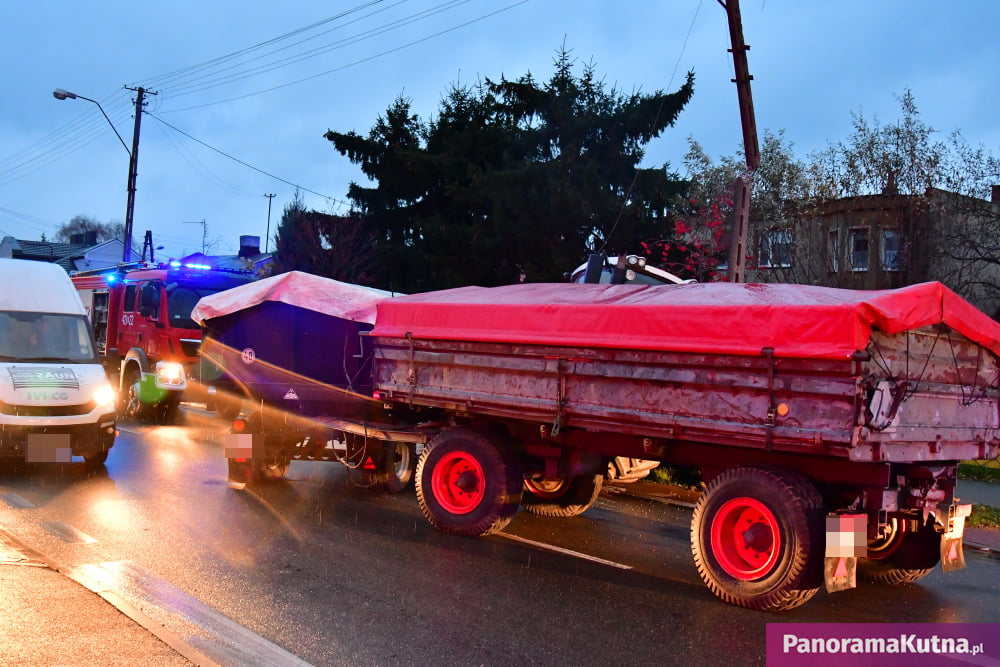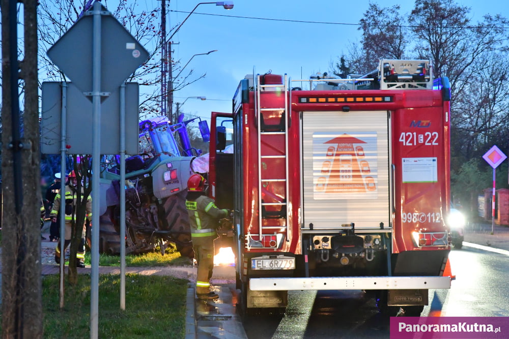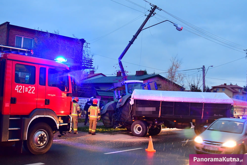 Chwilę po godzinie 16.00 na ulicy Łęczyckiej w Kutnie doszło do groźnie wyglądającego zdarzenia drogowego. Z niewiadomych na tę chwilę przyczyn kierowca ciągnika stracił panowanie nad pojazdem, w wyniku czego uderzył w słup energetyczny. Ze wstępnych ustaleń wynika że nie ma osób poszkodowanych.