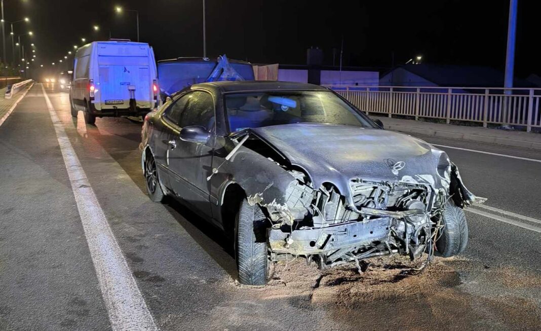Dzisiejszego wieczora na wiadukcie przy ulicy Łęczyckiej w Kutnie doszło do groźnego wypadku. Rozpędzony mercedes uderzył z dużą siłą w bariery ochronne.
