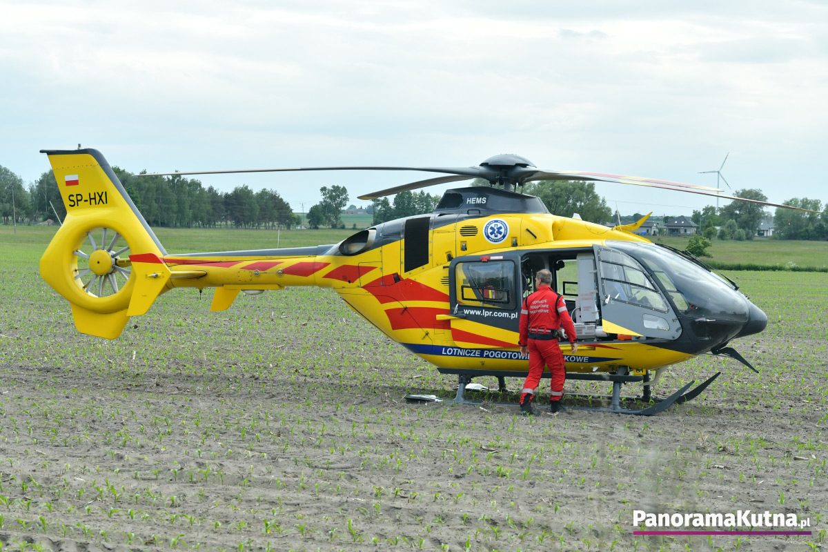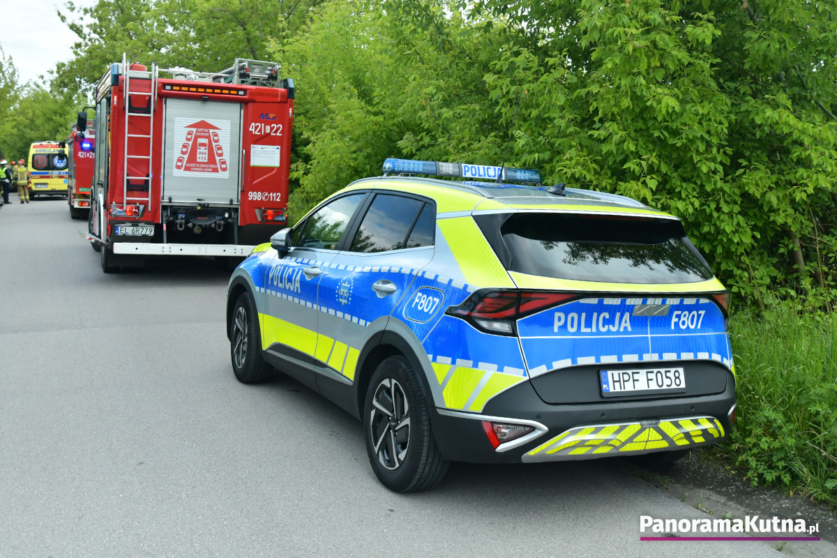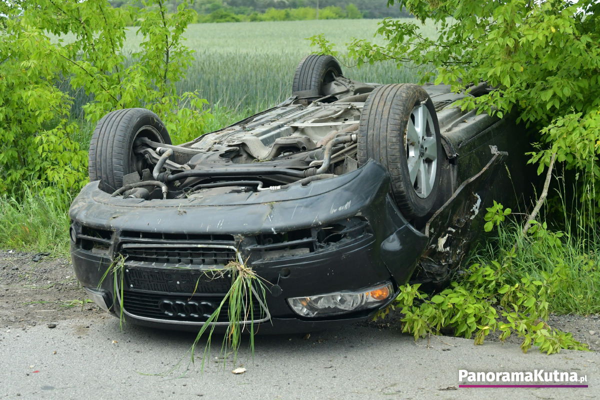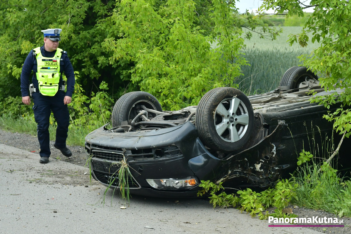 Zgłoszenie o zdarzeniu wpłynęło do kutnowskich służb około godziny 15:20. Ze wstępnych ustaleń wynika, że doszło do dachowania samochodu osobowego. W pobliżu miejsca zdarzenia znaleziono także nieprzytomnego rowerzystę. Na miejsce zadysponowano śmigłowiec Lotniczego Pogotowia Ratunkowego. Na razie nie są znane przyczyny wypadku. Trwa ustalanie okoliczności zdarzenia.