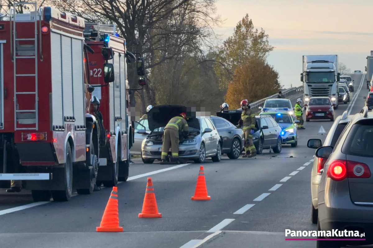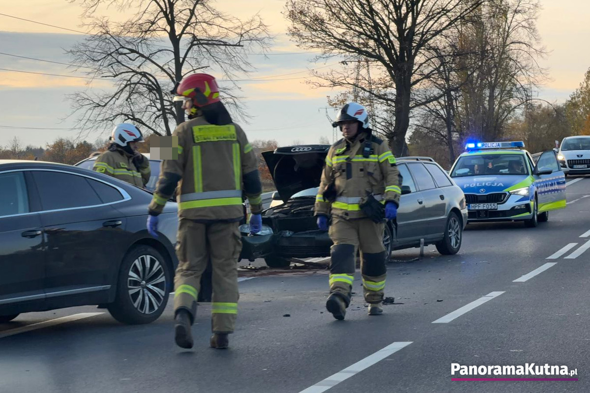 Jak powiedziała Panoramie Kutna aspirant Daria Olczyk, oficer prasowy Komendy Powiatowej Policji w Kutnie, ze wstępnych ustaleń wynika, że kobieta kierująca volkswagenem wykonywała manewr skrętu, gdy w tył jej pojazdu uderzył inny volkswagen. To zderzenia wywołało efekt domina i w tył drugiego volkswagena wjechał citroën, a w niego następnie uderzyło audi.