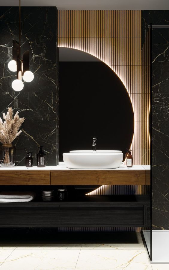 Chcesz, żeby łazienka była przytulna? Połącz płytki w odcieniach piaskowego beżu z meblami z jasnego drewna i dodatkami w kolorze złota. To duet, który nigdy się nie nudzi. Jeśli marzy ci się coś odważniejszego, spróbuj zestawić czarne płytki z białymi meblami i dodatkami w odcieniach miedzi. Efekt? Industrialny klimat z nutą elegancji. A może zależy ci na maksymalnym poczuciu przestrzeni? Postaw na połyskujące płytki w odcieniach bieli i chłodnego szaro-błękitu, dobierz do tego minimalistyczne meble w połysku i duże lustro, które optycznie „podwoi” metraż. A może płytki podłogowe do łazienki, które nadadzą ponadczasowej elegancji? Płytki drewnopodobne w odcieniach ciemnego brązu lub zimnego jasnego drewna to strzał w dziesiątkę.