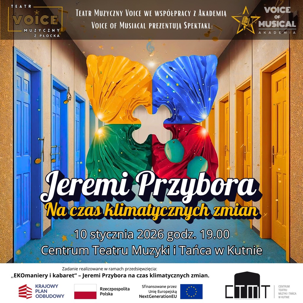 Już 10 stycznia 2026 roku o 19:00 Centrum Teatru Muzyki i Tańca zaprasza na wyjątkowy spektakl muzyczny „Jeremi Przybora na czas klimatycznych zmian”. To niecodzienna okazja, by przenieść się w świat twórczości Jeremiego Przybory w nowej, klimatycznej odsłonie, pełnej muzyki i refleksji nad współczesnym światem. Spektakl łączy w sobie elegancję, humor i subtelną ironię, charakterystyczne dla legendarnego artysty.