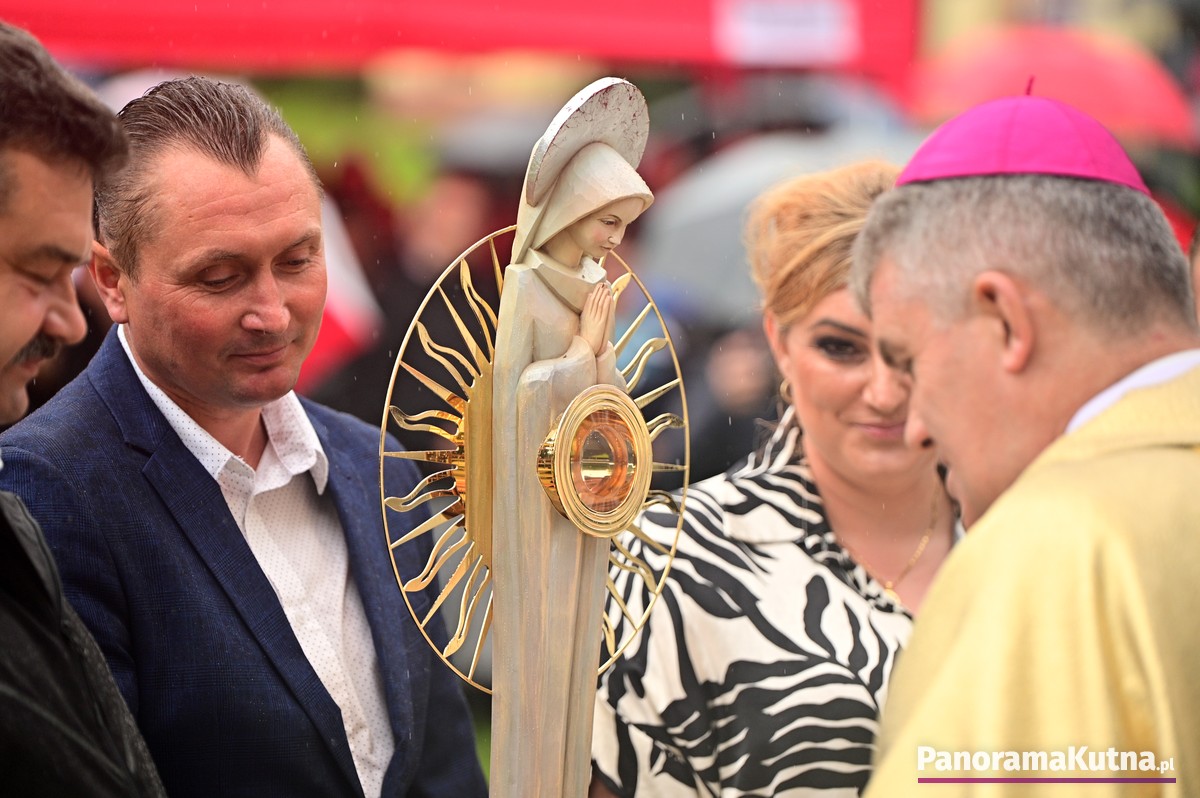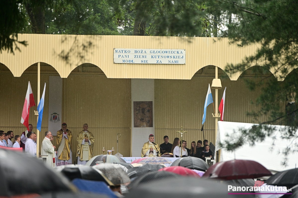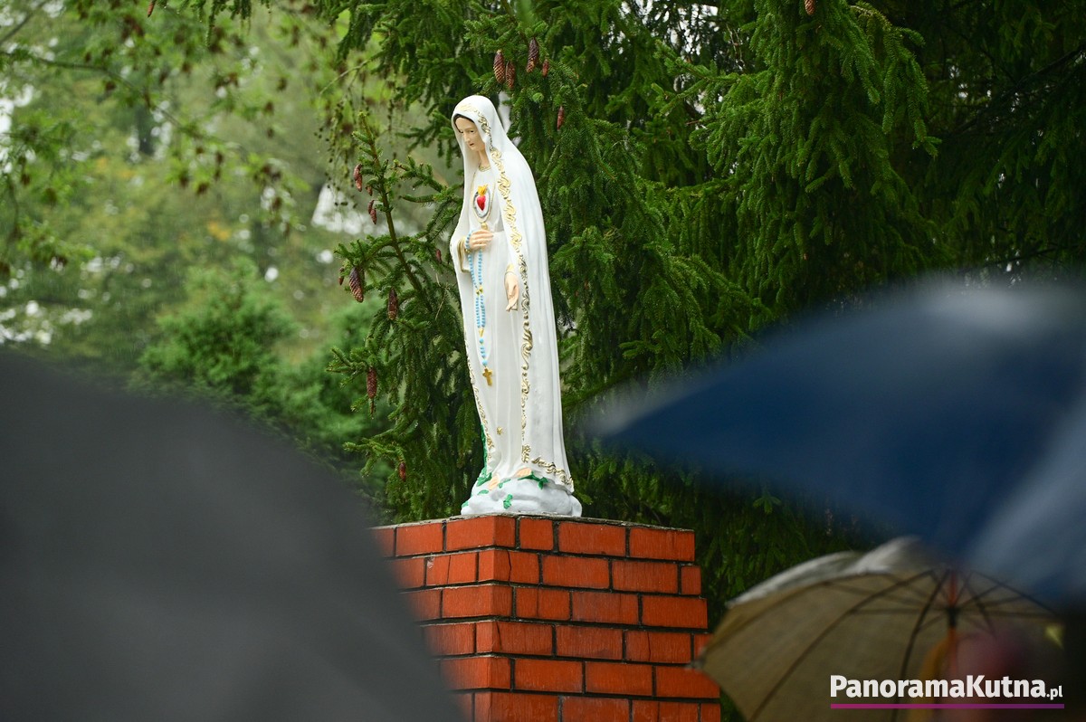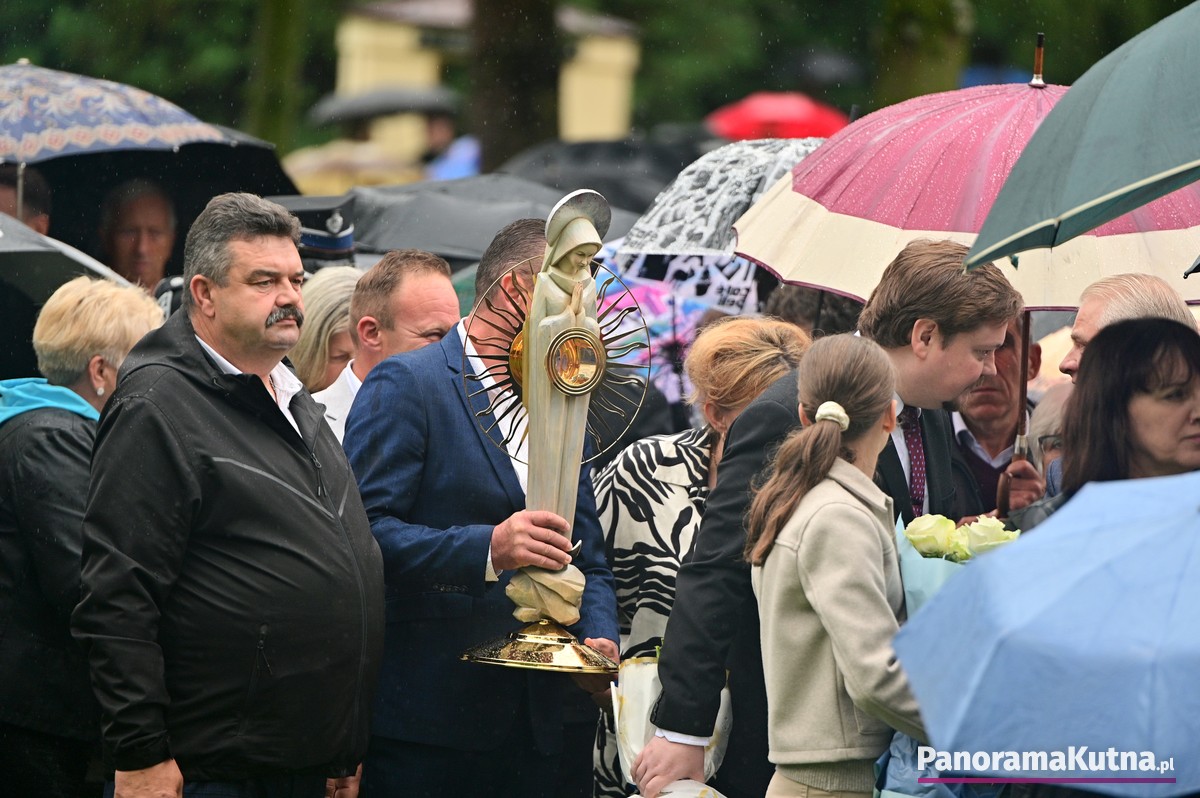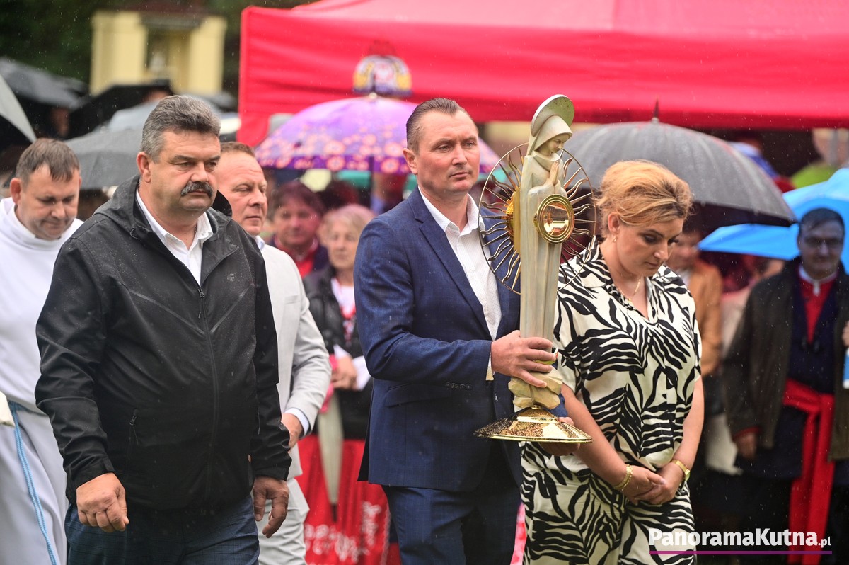 Choć wydarzenie odbywało się w strugach deszczu, pogoda nie ostudziła gorącej modlitwy wiernych z powiatu kutnowskiego i pielgrzymów z różnych zakątków Polski. Setki osób zgromadziły się przed sanktuarium, by wspólnie oddać cześć Maryi.