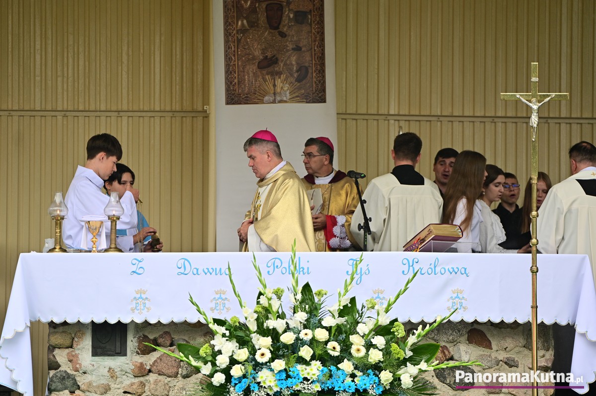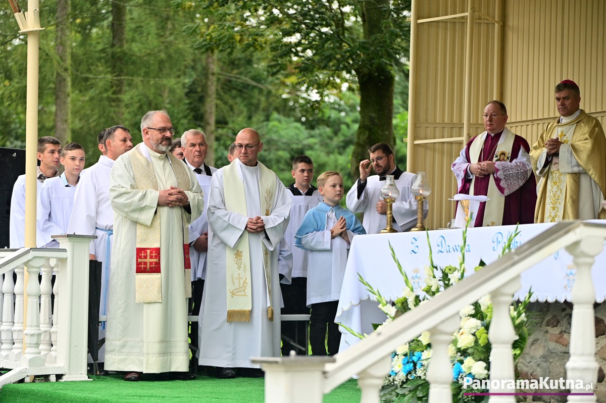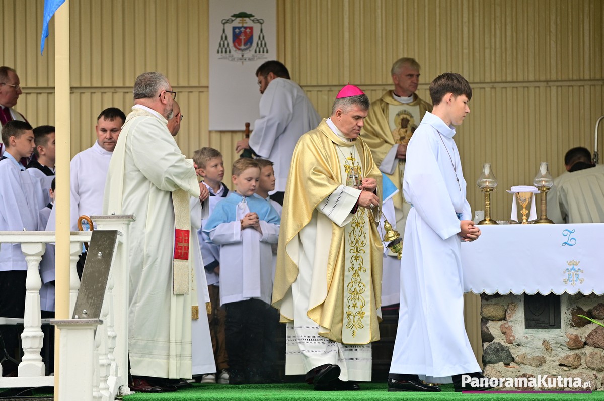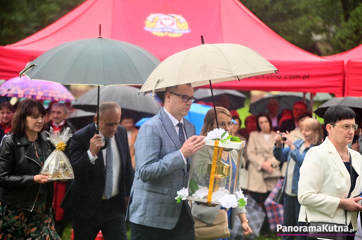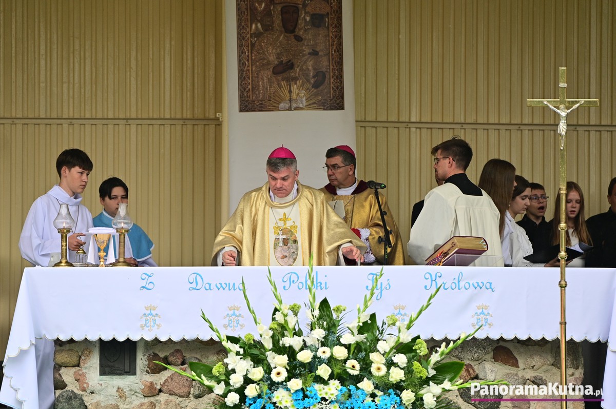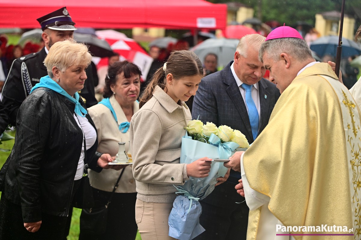 Choć wydarzenie odbywało się w strugach deszczu, pogoda nie ostudziła gorącej modlitwy wiernych z powiatu kutnowskiego i pielgrzymów z różnych zakątków Polski. Setki osób zgromadziły się przed sanktuarium, by wspólnie oddać cześć Maryi.