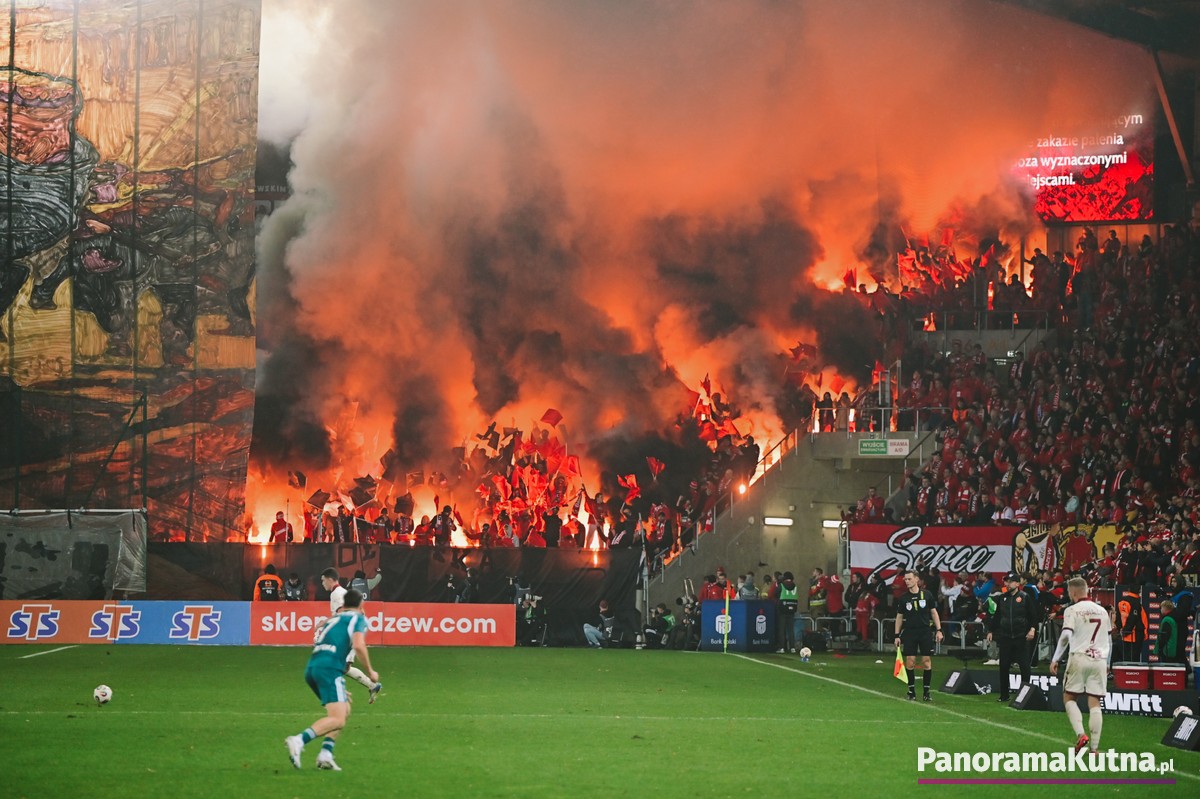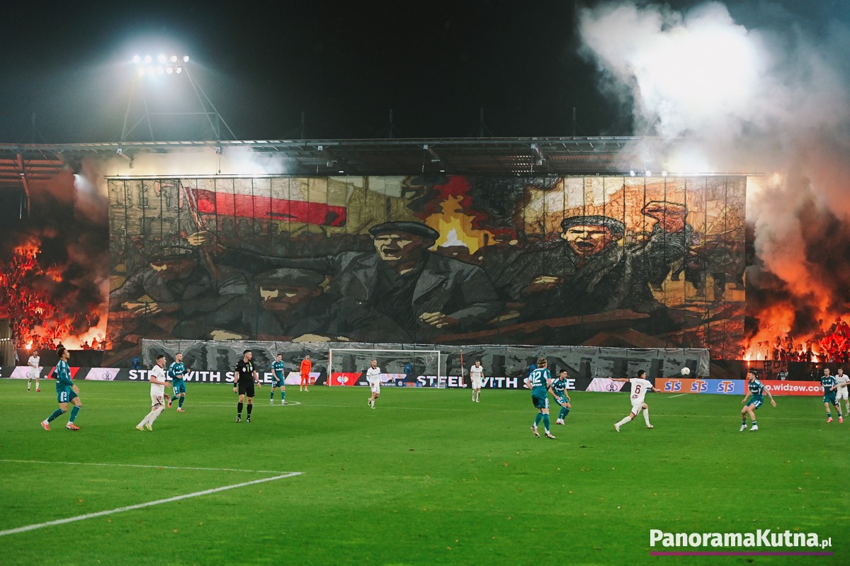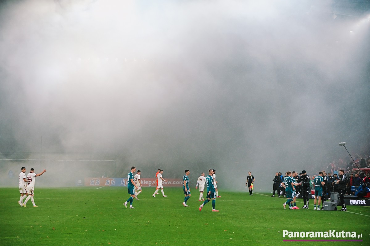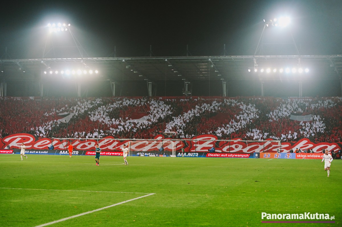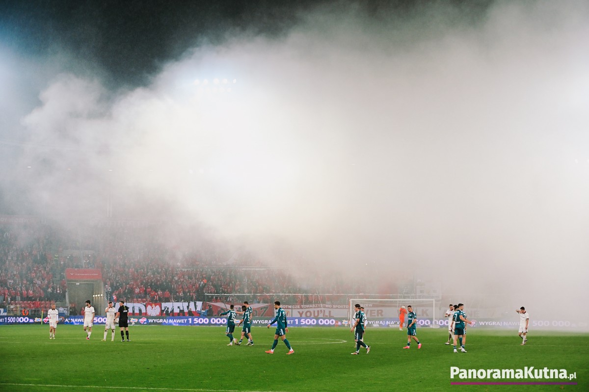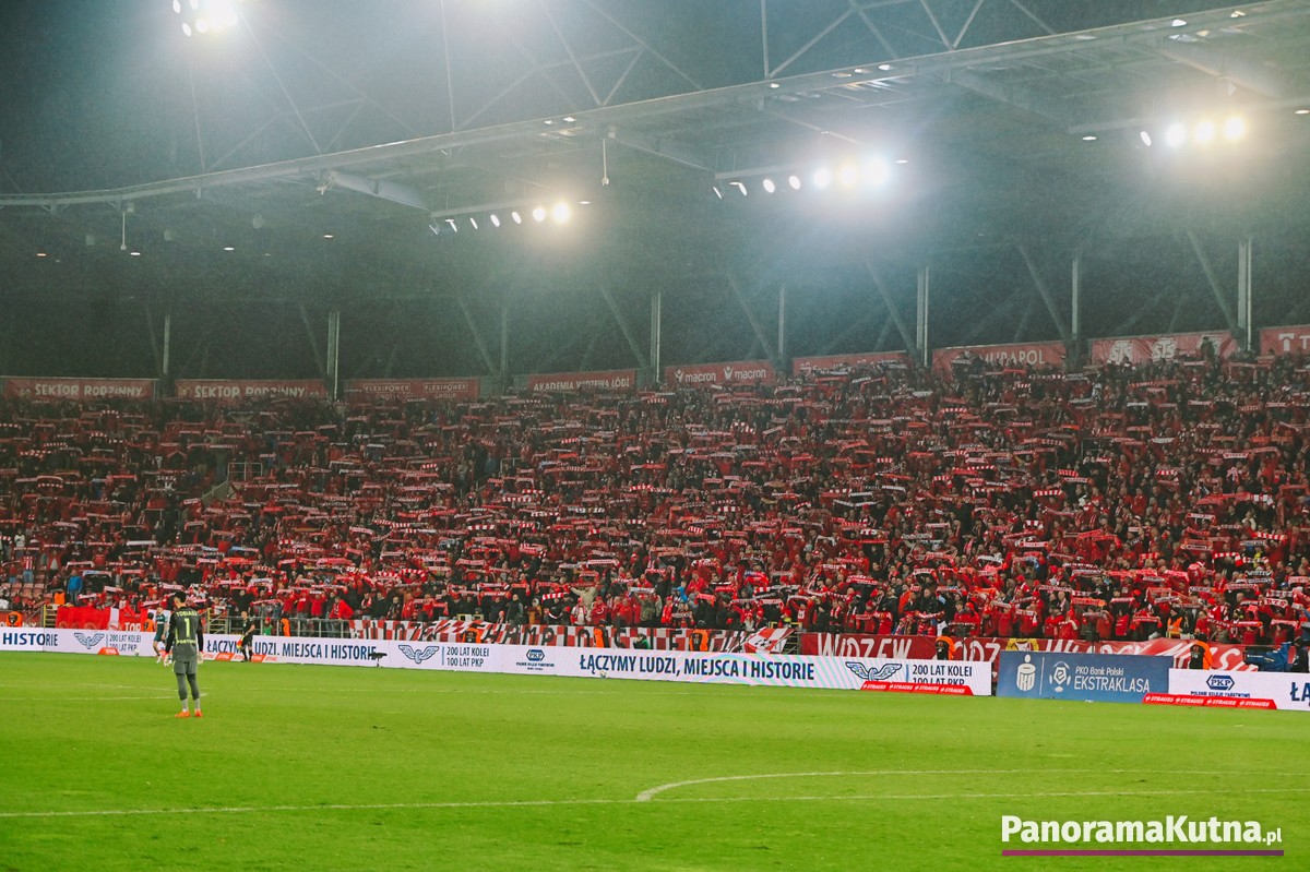 W pierwszej połowie nie brakowało emocji i akcji bramkowych. Najciekawiej było jednak na trybunach – kibice Widzewa Łódź zaprezentowali piękną oprawę z użyciem pirotechniki. Na trybunach łącznie zasiało ponad 17 tysięcy fanów łódzkiej drużyny, nie brakowało także jak zawsze kibiców z Kutna i okolic.