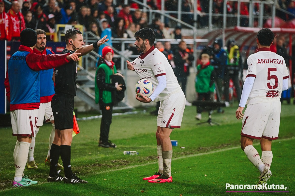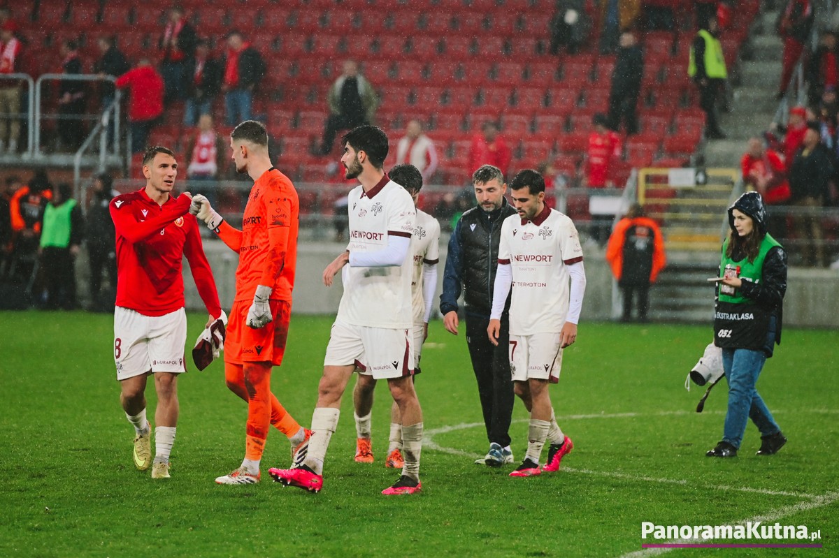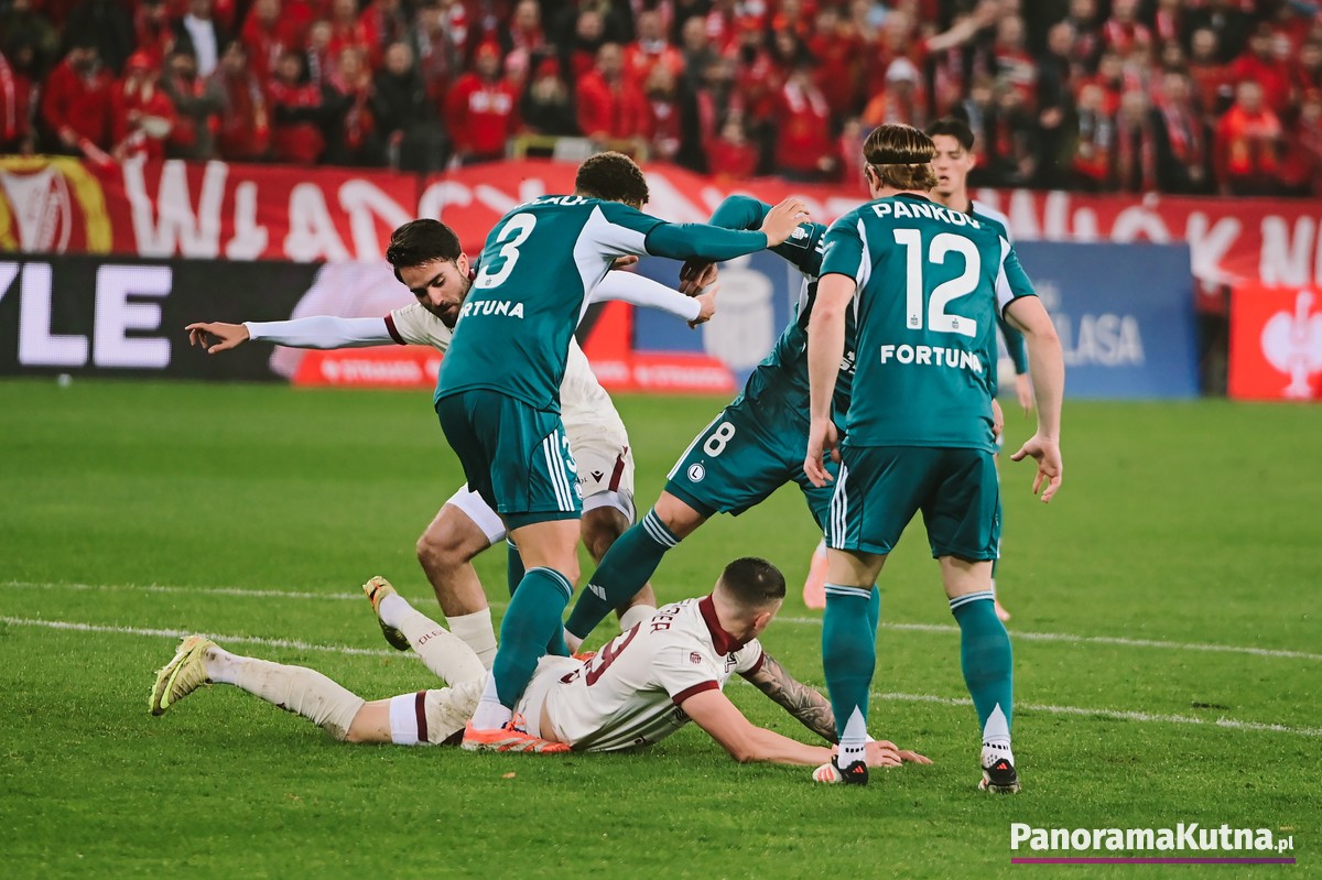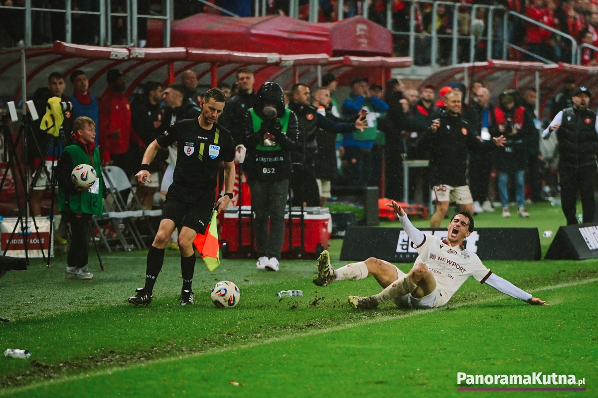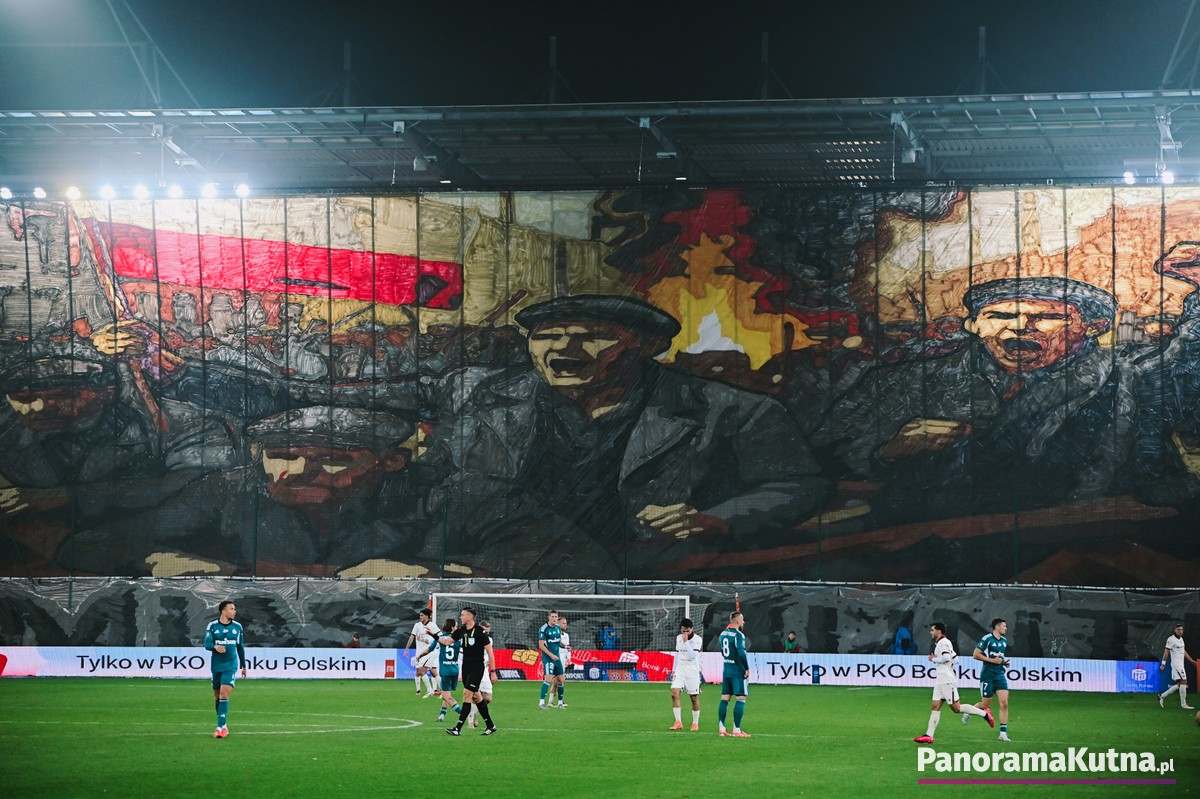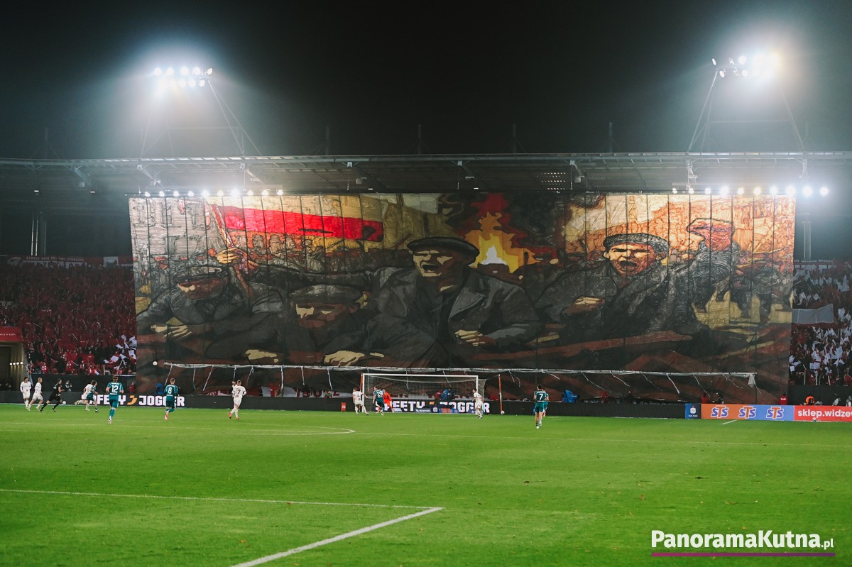 W pierwszej połowie nie brakowało emocji i akcji bramkowych. Najciekawiej było jednak na trybunach – kibice Widzewa Łódź zaprezentowali piękną oprawę z użyciem pirotechniki. Na trybunach łącznie zasiało ponad 17 tysięcy fanów łódzkiej drużyny, nie brakowało także jak zawsze kibiców z Kutna i okolic.