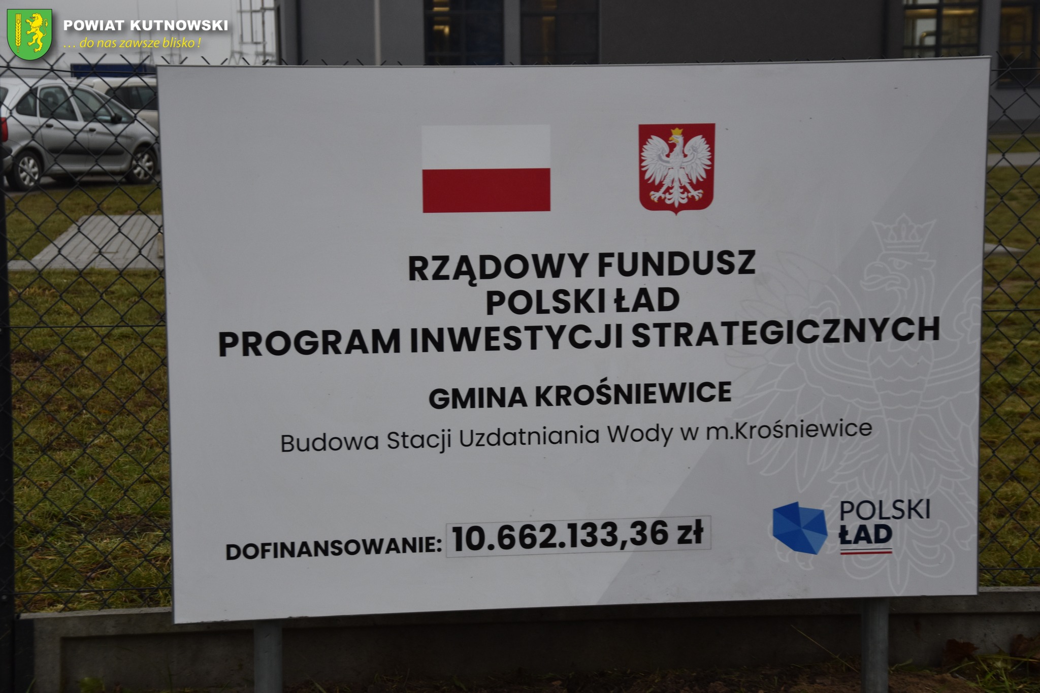 W dniu 9 grudnia 2024 roku miało miejsce uroczyste otwarcie nowoczesnej Stacji Uzdatniania Wody w Krośniewicach przy ul. Toruńskiej, w którym uczestniczyli m.in. Daniel Kowalik – Starosta Kutnowski oraz Tomasz Walczewski – Członek Zarządu Powiatu Kutnowskiego. Obecni byli także Przemysław Błaszczyk – Senator RP oraz Posłowie na Sejm RP Marek Matuszewski i Tadeusz Woźniak.