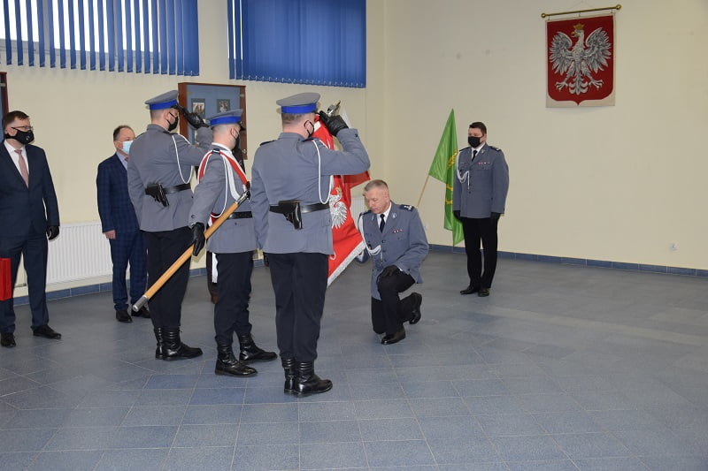 Na początku uroczystości odczytano rozkaz personalny Komendanta Wojewódzkiego Policji w Łodzi nadinsp. Sławomira Litwina o zwolnieniu ze służby z dniem 29 stycznia 2022 roku mł. insp. Józefa Porede, po którym nastąpiło pożegnanie Komendanta ze Sztandarem jednostki.
