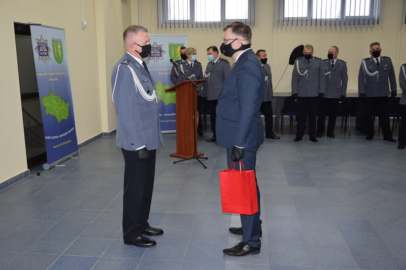 Mł.inspektor Józef Poreda podziękował wszystkim za lata dobrej współpracy, przychylność, a także pomoc w realizacji różnych przedsięwzięć. Szczególne podziękowania skierował do osób, z którymi miał kontakt na co dzień, czyli kadry kierowniczej, funkcjonariuszy oraz pracowników kutnowskiej komendy.