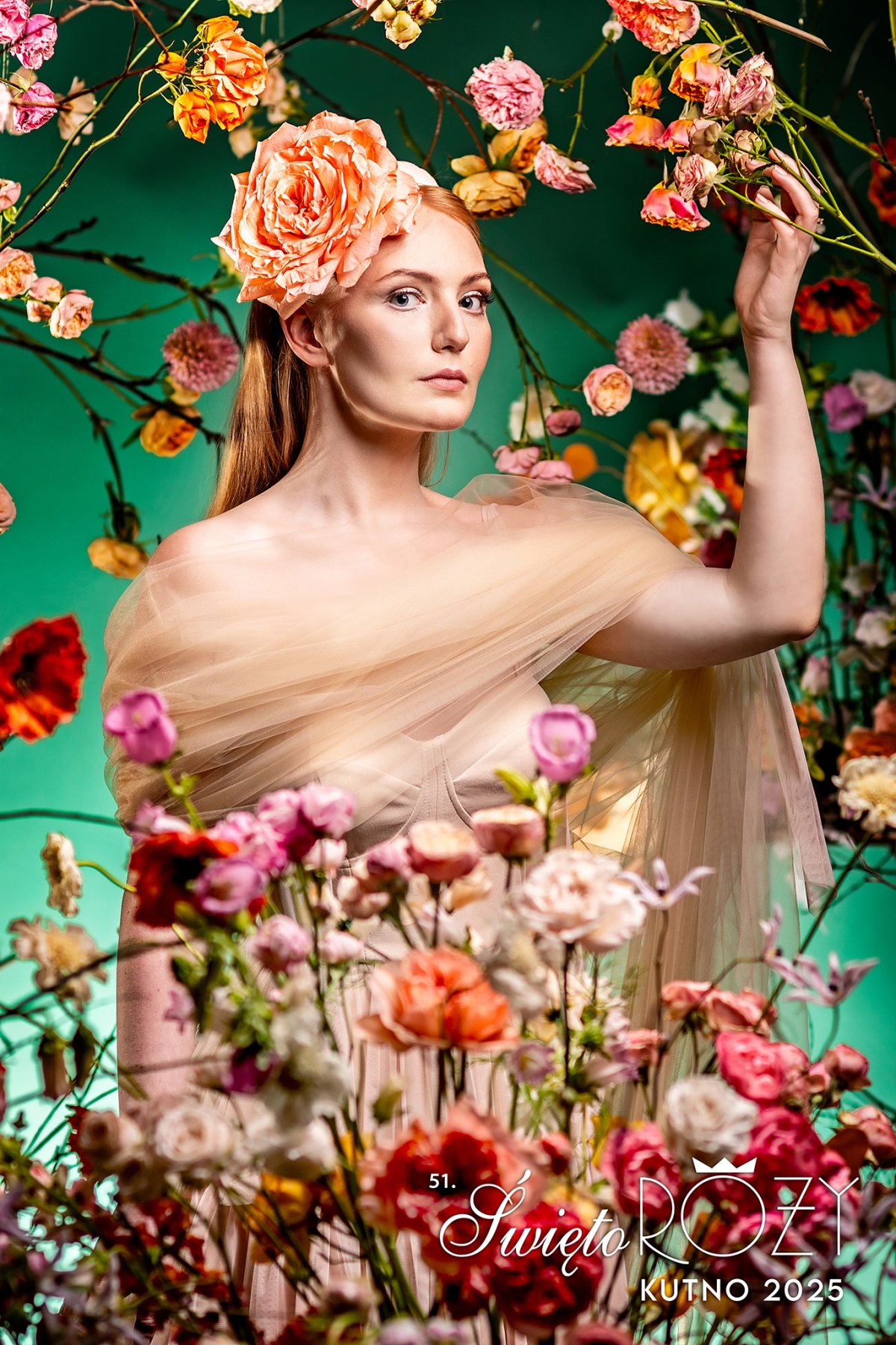 Tegoroczna sesja zdjęciowa Królowej Róż, z okazji zbliżającego się 51. Święta Róży w Kutnie, zachwyca świeżością spojrzenia, artystyczną odwagą i subtelnością. Inspiracją do jej stworzenia stał się tytuł Ogólnopolskiej Wystawy Róż – „Kształt zapachu”. Jak sfotografować coś, czego nie widać, a co można tylko poczuć? Jak pokazać lekkość i ulotność aromatu róż? Odpowiedź przyniosła poetycka, przemyślana koncepcja sesji zdjęciowej autorstwa Tomasza Kuli-Andryszczaka, w której główną rolę odgrywają kwiaty, światło, ruch… i ona. Królowa Róż – Martyna Popławska.