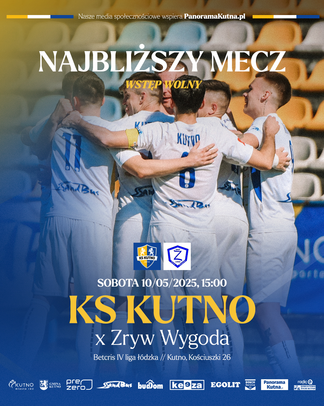 Przed KS Kutno jeden z kluczowych pojedynków w walce o utrzymanie w IV lidze łódzkiej. W sobotę, 10 maja, o godzinie 15:00 kutnowscy piłkarze podejmą na własnym boisku Zryw Wygoda. Spotkanie ma ogromne znaczenie w kontekście ligowej tabeli – dla gospodarzy to dosłownie mecz o wszystko. Wstęp na stadion jest bezpłatny.