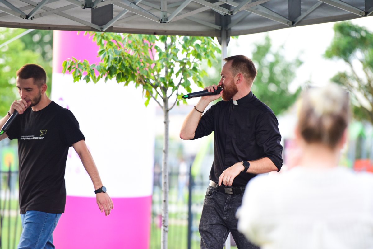 Prawdziwą niespodzianką wieczoru był jednak występ księdza Mateusza Wasińskiego, znanego również jako Wasina. Kapłan-raper zachwycił młodszą część publiczności szczerymi tekstami i charyzmatycznym wykonaniem. Jego koncert był nie tylko muzycznym, ale też emocjonalnym przeżyciem, które pokazało, że wartości można przekazywać także w rytmach hip-hopu.