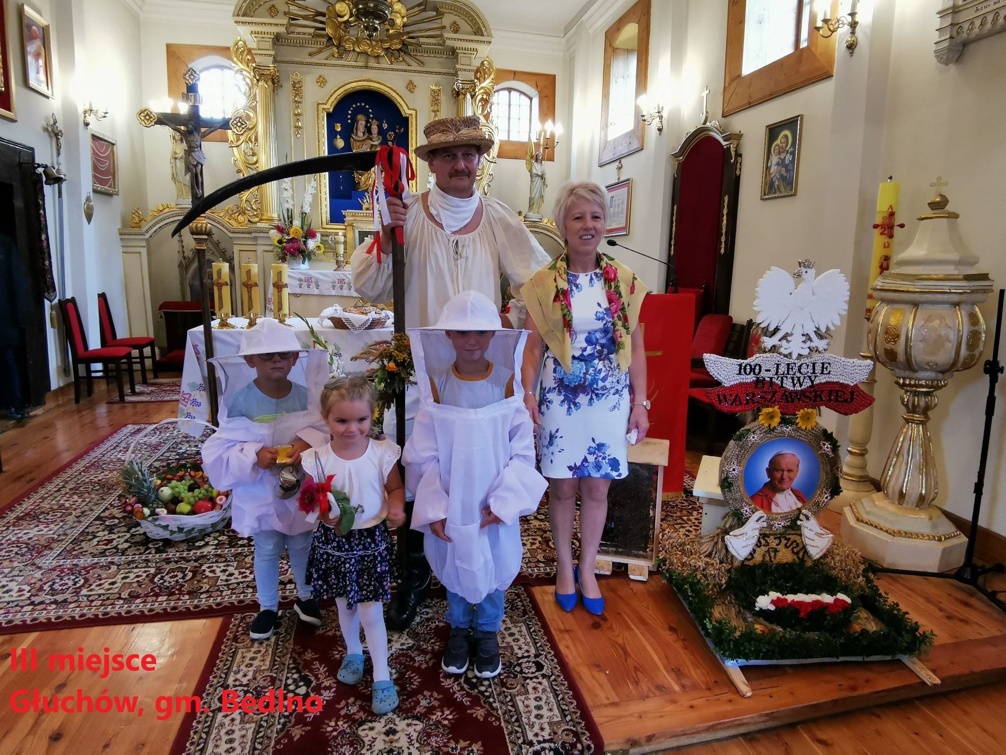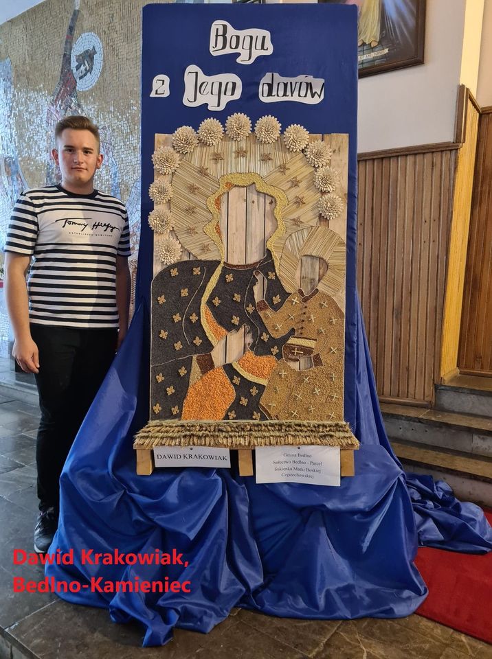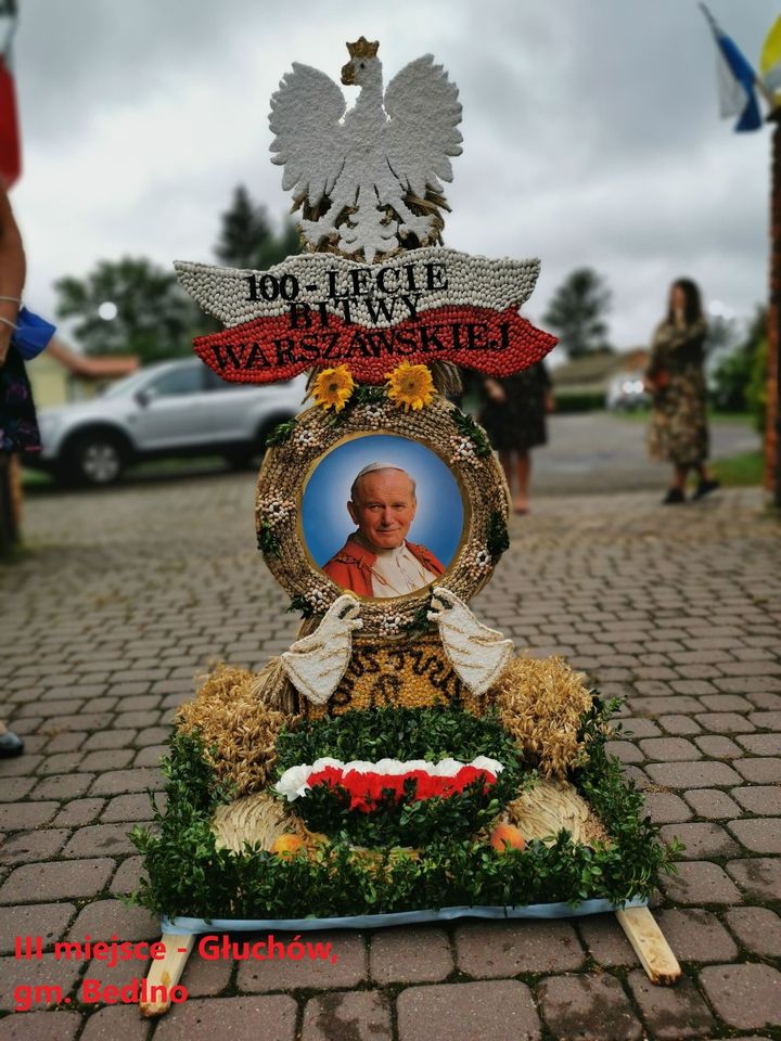 III miejsce zajął wieniec zgłoszony przez Głuchów z gm. Bedlno (60 pkt). W wieńcu użyte są naturalne materiały, a dodatkowo wieniec nawiązuje do wydarzenia patriotycznego – obchodzonego w tym roku Stulecia Bitwy Warszawskiej. Ja pod uwagę przy ocenie wziąłem także ubiór osoby wykonującej winiec, nawiązujący do tradycyjnego ubioru żniwiarza – mówi Tomasz Walczewski, członek Zarządu Powiatu Kutnowskiego i członek jury.