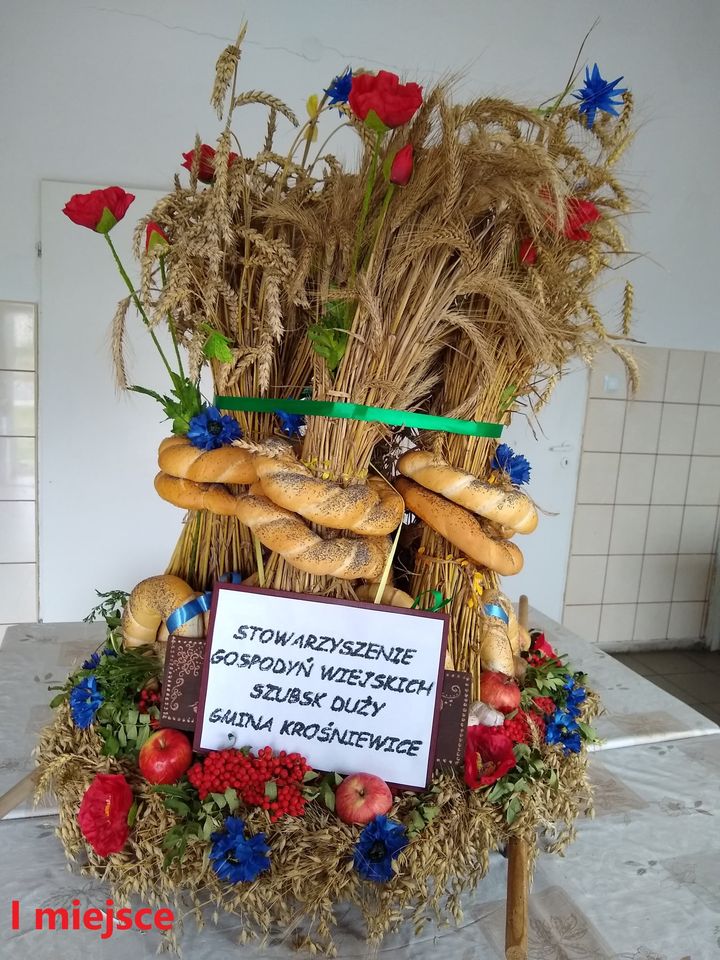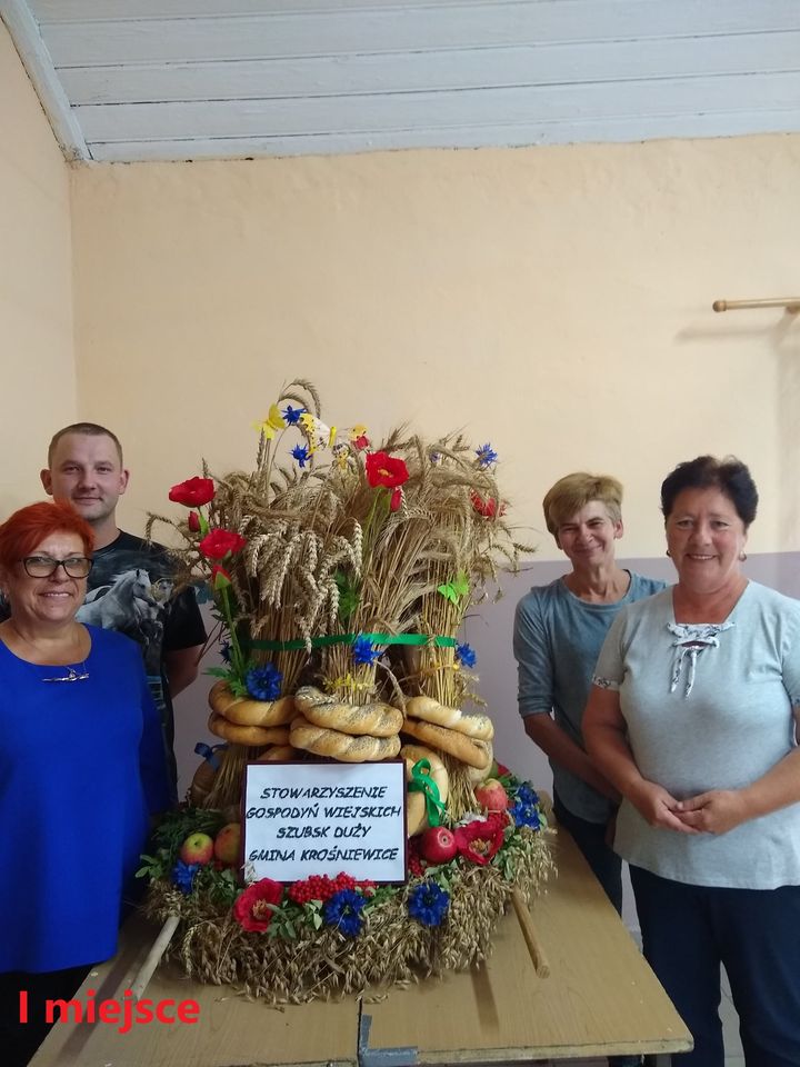 I miejsce zajęło Stowarzyszenie Gospodyń Wiejskich Szubsk Duży z gminy Krośniewice, które uzyskało 80 punktów. – Wieniec nawiązuje do tradycji (snopy), przez zastosowanie w nim chabrów, zbóż, jabłek czy maków. Kojarzy się z urokiem letniego krajobrazu polskiej wsi – mówi Małgorzata Przygodzka – dyrektor GCKSiR w Krośniewicach, członek jury.