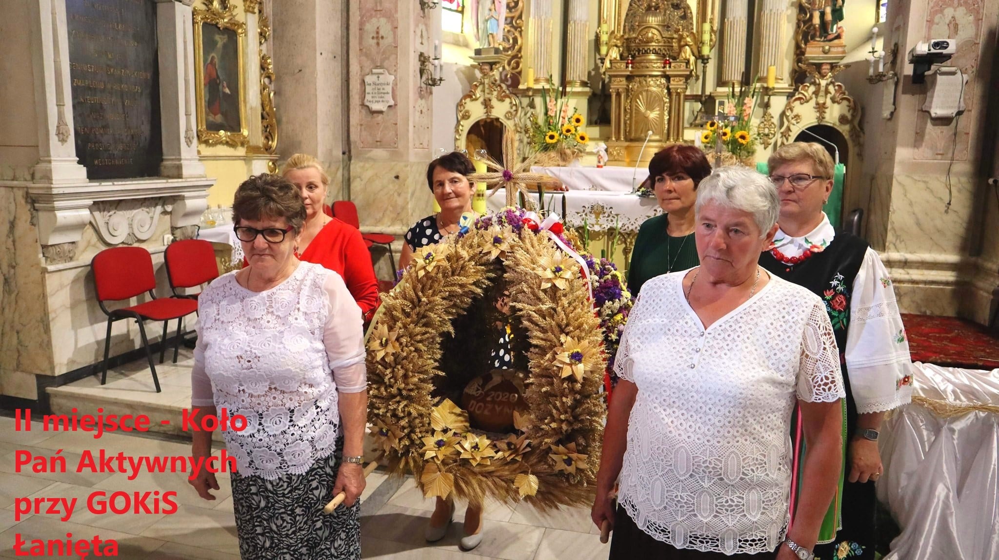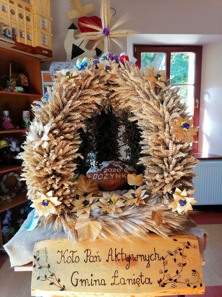 II miejsce zajął wieniec przygotowany przez Koło Pań Aktywnych przy Gminnym Ośrodku Kultury i Sportu w Łaniętach (70 pkt). – Wieniec ten został wykonany tradycyjnie, z materiałów naturalnych. Jest on wyważony kompozycyjnie, a do tego zastosowano w nim specjalnie przygotowaną słomę, z której wykonano kwiaty – dodaje Małgorzata Przygodzka.