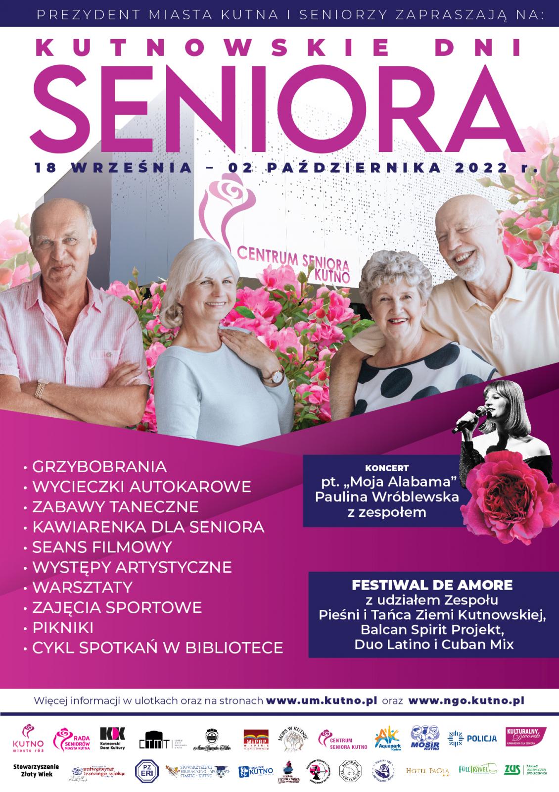 Cykl wydarzeń poświęcony grupie najstarszych mieszkańców miasta rozpocznie koncert Pauliny Wróblewskiej, która zaprezentuje się na deskach sceny w Centrum Teatru Muzyki i Tańca w niedzielę 18 września. Do 2 października Seniorzy będą mogli korzystać z atrakcji sportowych, tanecznych, wyjazdów autokarowych, grzybobrania, spotkań przy grillu i muzyce, spektakli teatralnych czy seansów filmowych. To oczywiście nie wszystkie wydarzenia przygotowane w ramach tegorocznych Kutnowskich Dni Seniora.