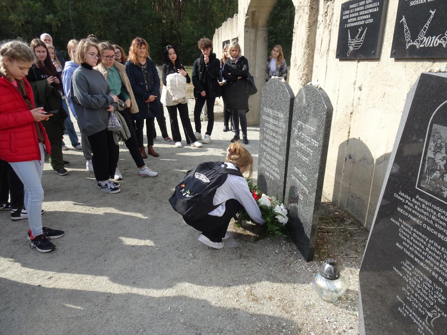 To w tym obozie zagłady zostali zamordowani kutnowscy Żydzi. Młodzież złożyła pod tablicą upamiętniającą zagładę kutnowskich Żydów wiązankę biało-czerwonych kwiatów (jak informuje napis, tablica została ufundowana przez mieszkańców Kutna i uroczyście odsłonięta w 2006 roku). Wrześniowy wyjazd młodzieży został zorganizowany przez Towarzystwo Przyjaciół Ziemi Kutnowskiej w ramach realizowanego projektu „Na krawędzi pamięci… rzecz o zagładzie kutnowskich Żydów”, który jest finansowany przez Prezydenta Miasta Kutno. Naszymi partnerami w projekcie są: Kutnowski Dom Kultury i Muzeum Regionalne w Kutnie.Patronat Honorowy nad zadaniem przyjęli: Prezydent Miasta Kutno Zbigniew Burzyński, Kutnowska Rada Pamięci Narodowej oraz Jewish Kutno Group. Patronat medialny: Słowo Żydowskie.