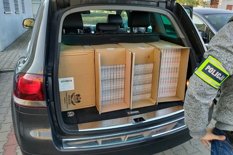 27 września 2021 roku tuż przed godziną 16.00 na drodze krajowej 92 funkcjonariusze zatrzymali do kontroli drogowej kierowcę volkswagena touarega. Za kierownicą siedział wytypowany przez mundurowych 50-latek. W jego samochodzie policjanci ujawnili 110 tysięcy sztuk papierosów bez polskich znaków akcyzy. To dało podstawę również do przeszukania pomieszczeń mieszkalnych i gospodarczych mężczyzny.