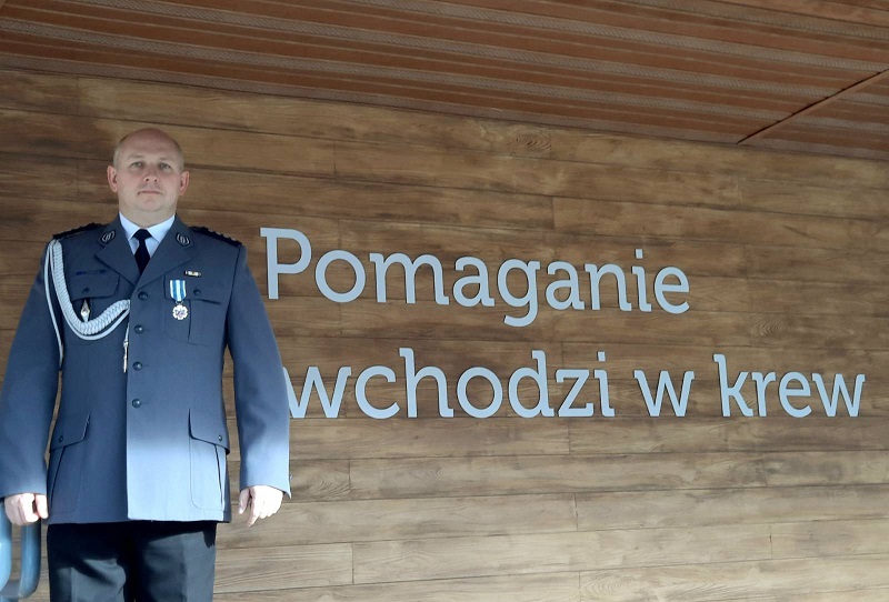Nadkomisarz Janusz Osowski pomaganie ma we krwi, dzieli się nią od ponad 25 lat. Łącznie przez te lata, dla ratowania ludzkiego zdrowia i życia, oddał już ponad 33 litry krwi. Teraz został uhonorowany orderem „Honorowy Dawca Krwi – Zasłużony dla Zdrowia Narodu”.