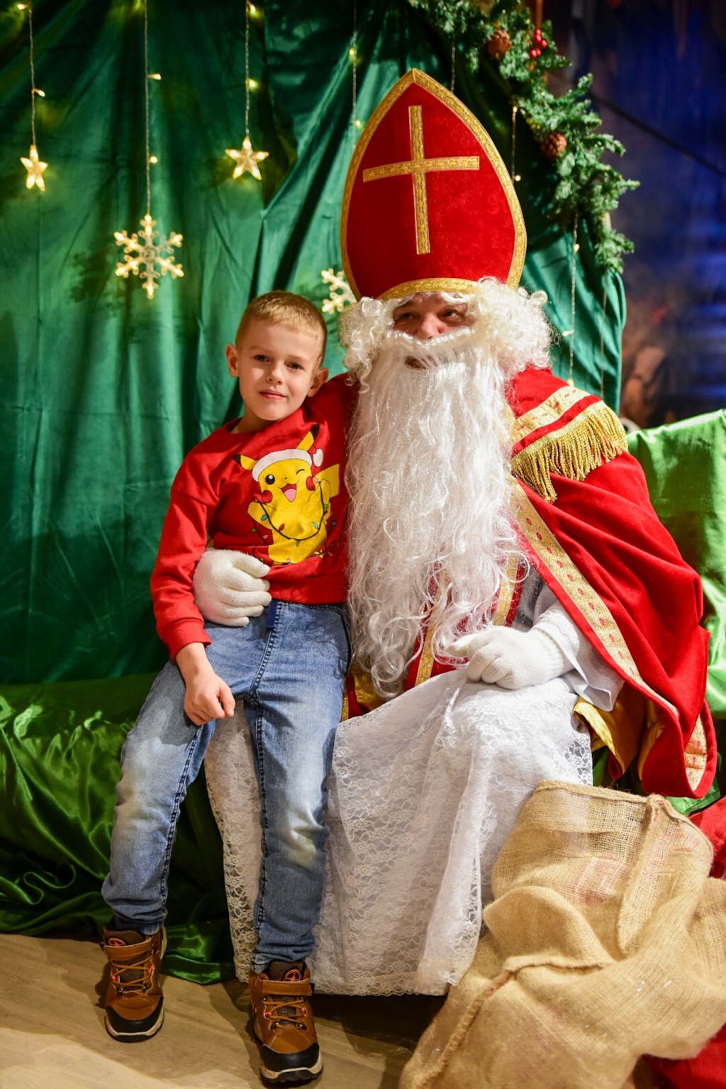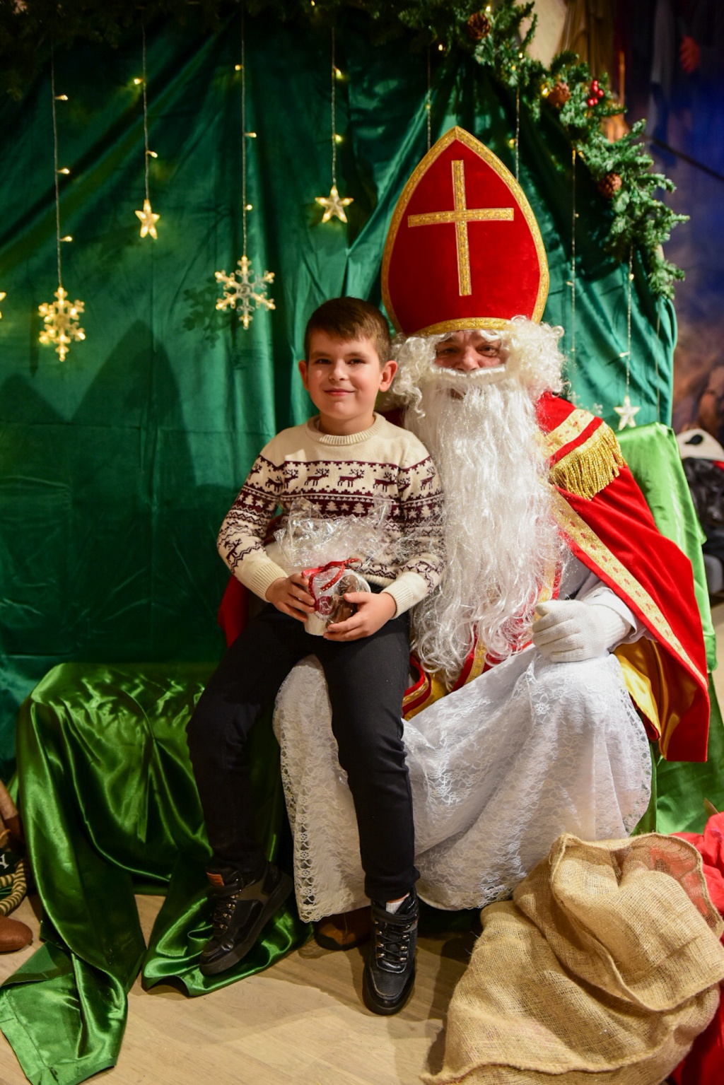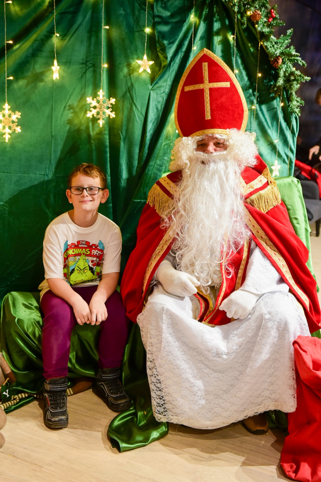 Nie mogło oczywiście zabraknąć najważniejszego gościa! Święty Mikołaj, tradycyjnie obdarowujący prezentami i uśmiechem, nie zawiódł oczekiwań. W tę rolę, podobnie jak wcześniej podczas miejskich Mikołajek, wcielił się radny Robert Feliniak. Dzieci chętnie siadały na jego kolanach, recytowały wierszyki i odbierały słodkie upominki, a radość malowała się na ich twarzach.