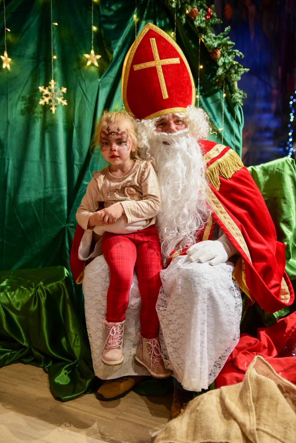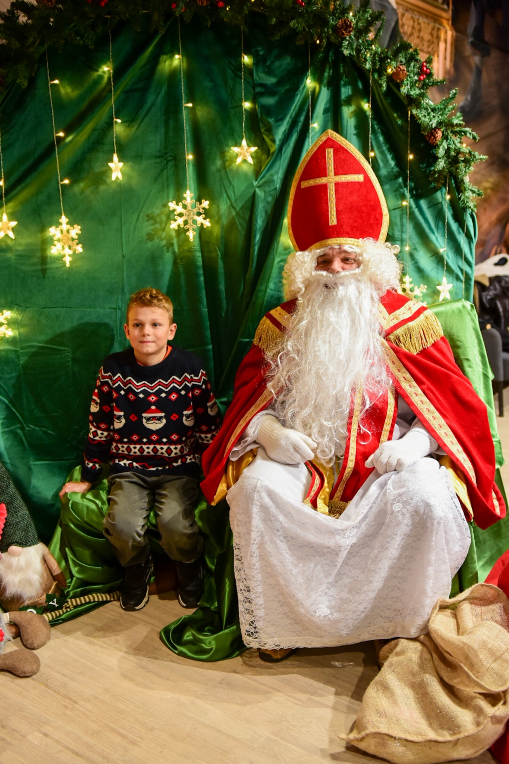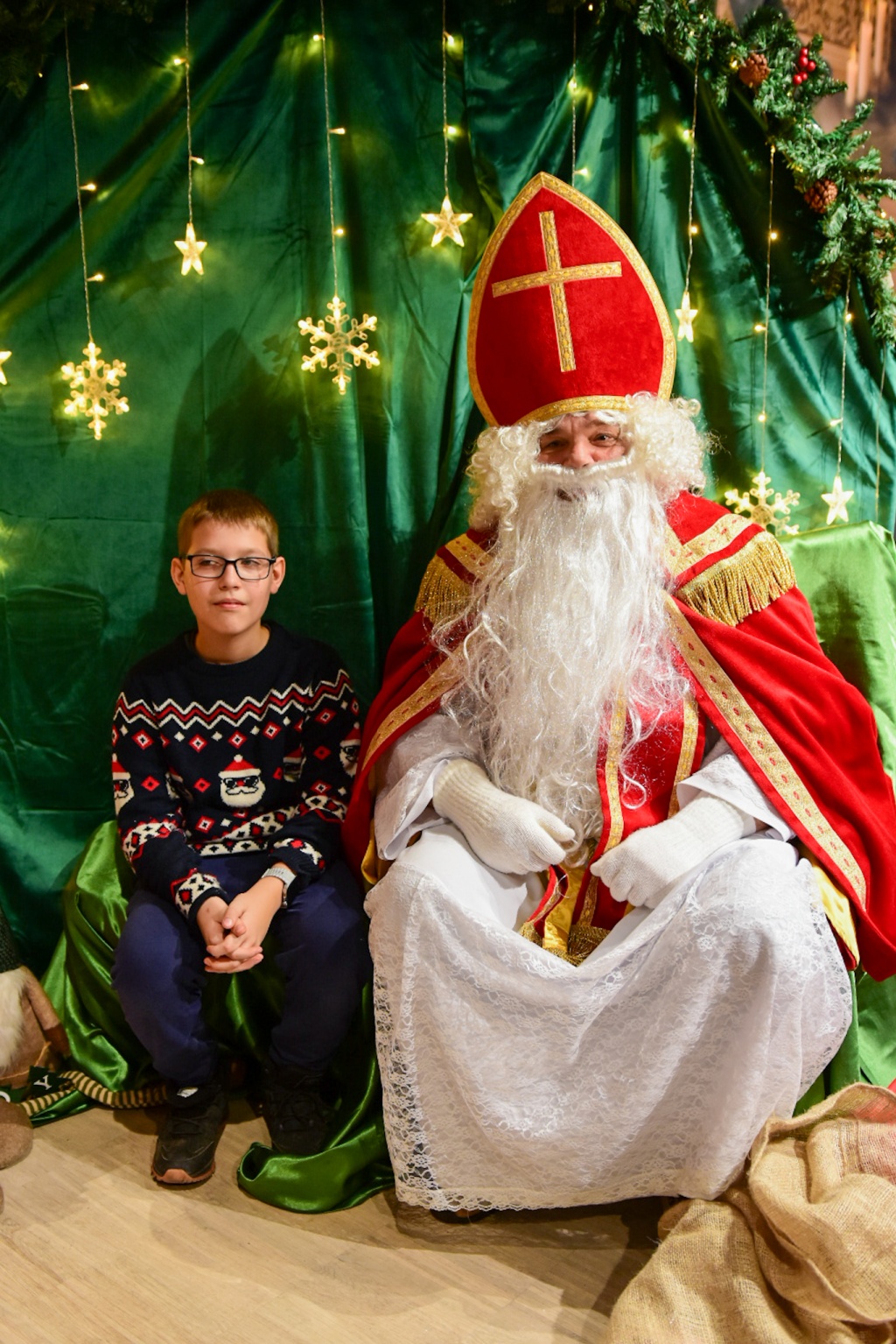 Nie mogło oczywiście zabraknąć najważniejszego gościa! Święty Mikołaj, tradycyjnie obdarowujący prezentami i uśmiechem, nie zawiódł oczekiwań. W tę rolę, podobnie jak wcześniej podczas miejskich Mikołajek, wcielił się radny Robert Feliniak. Dzieci chętnie siadały na jego kolanach, recytowały wierszyki i odbierały słodkie upominki, a radość malowała się na ich twarzach.