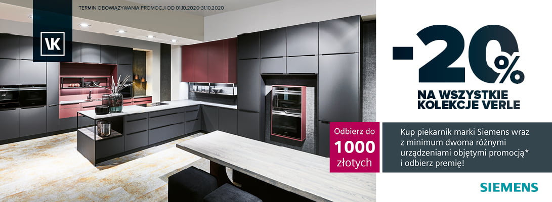 Dobra wiadomość dla wszystkich planujących remont! Meble kuchenne i pokojowe renomowanej marki Verle Küchen dostępne są teraz z 20-procentowym rabatem. Co więcej, dodatkowy zwrot do 1000 zł możesz zyskać, zmawiając sprzęt AGD marki Siemens. Dowiedz się, gdzie w okolicach Kutna możesz skorzystać z promocji.