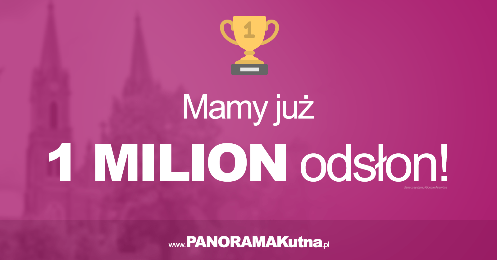 Miło nam poinformować, że www.PanoramaKutna.pl ma już 1 MILION odsłon! Dziękujemy za zaufanie, jakim nas obdarzacie i częste odwiedziny nowego kutnowskiego portalu informacyjnego.