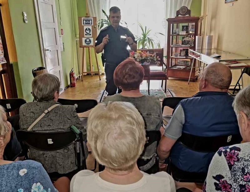 18 maja 2022 roku asp.sztab. Grzegorz Wasilewski dzielnicowy Komisariatu Policji w Żychlinie spotkał się z seniorami na terenie Miejsko-Gminnej Biblioteki Publicznej. Spotkanie to odbyło się w ramach akcji „Aktywny i świadomy senior”. Poświęcone było bezpieczeństwu osób starszych. Dzielnicowy przekazał uczestnikom wiele cennych rad o tym, jak nie stać się ofiarą oszustów. Informował między innymi o sposobach postępowania w sytuacji, gdy skontaktuje się z nimi rzekomy „wnuczek”, czy „policjant”. Seniorzy dowiedzieli się również jak uniknąć kradzieży w miejscach publicznych, takich jak ulice, targowiska, środki komunikacji miejskiej.