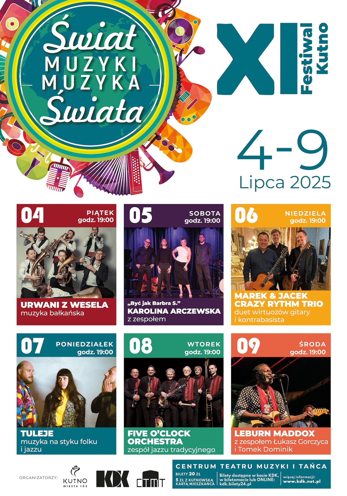 Wszystkie koncerty rozpoczynają się o godz. 19:00. Bilety kosztują 20 zł, a posiadacze Kutnowskiej Karty Mieszkańca zapłacą tylko 5 zł. Wejściówki można kupić w kasie KDK, biletomacie oraz online.