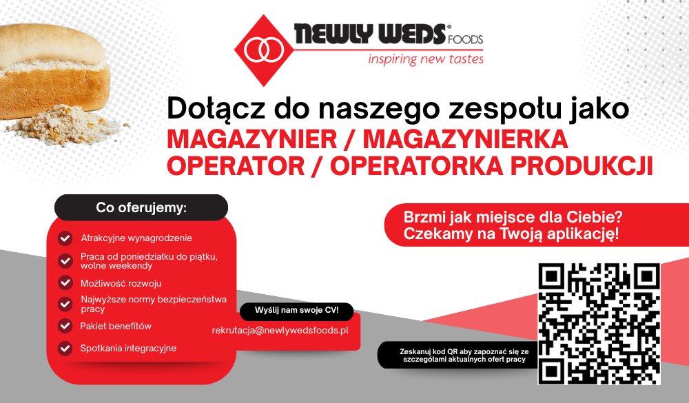 Newly Weds Foods Poland rekrutuje! Dołącz do zespołu jako: