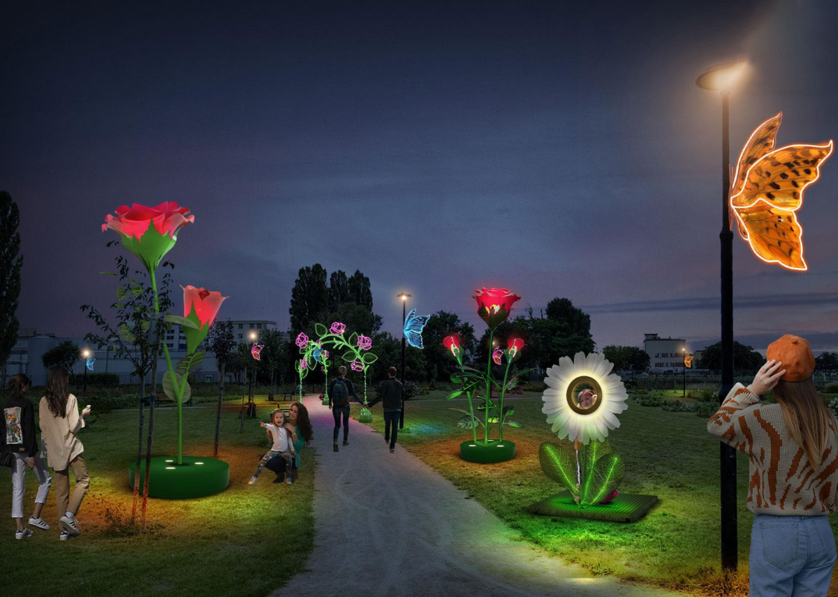 Zgodnie z założeniami projektu, w parkowej przestrzeni powstanie całoroczna, ogólnodostępna atrakcja turystyczna oparta na nowoczesnych technologiach LED. Park świateł ma składać się z przestrzennych figur przedstawiających zwierzęta i motywy kwiatowe, w tym oczywiście róże.