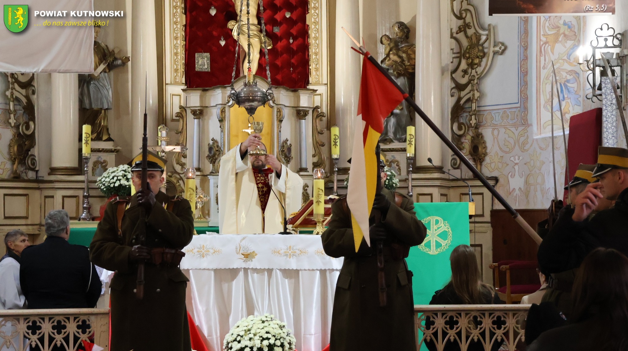 O muzyczną oprawę uroczystości zadbali członkowie zespołu Light of Hope ,oraz Orkiestra Dęta przy OSP Mazew. Świątynię wypełnili licznie wierni, a także poczty sztandarowe różnych instytucji, w tym Polskiego Klubu Kawaleryjskiego, jednostek Ochotniczych Straży Pożarnych z terenu Gminy Dąbrowice, oraz szkół ponadpodstawowych z Powiatu Kutnowskiego: I LO im. Gen. Jana Henryka Dąbrowskiego, II LO im. Jana Kasprowicza, Zespołu Szkół nr 1 im. Stanisława Staszica, Zespołu Szkół Zawodowych nr 2 im. dr. Antoniego Troczewskiego, Zespołu Szkół nr 3 im. Władysława Grabskiego, Zespołu Szkół nr 4 im. Zygmunta Balickiego w Kutnie-Azorach oraz Zespołu Szkół w Dąbrowicach. W obchodach uczestniczyli także liczni goście: