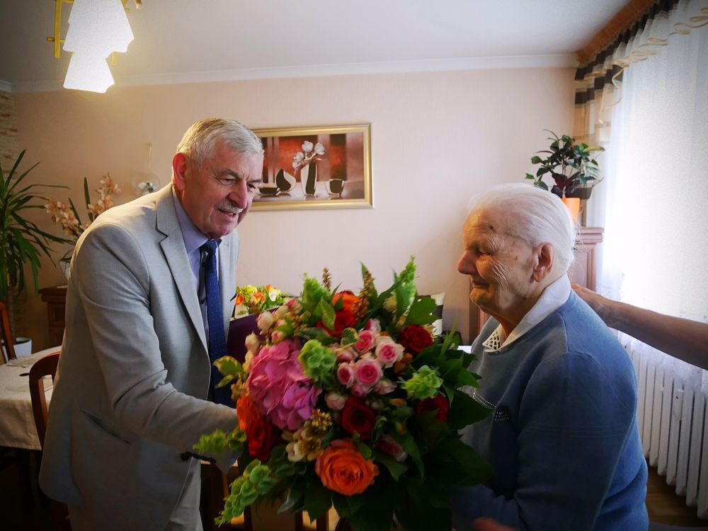 Obie jubilatki są w doskonałej kondycji i przyjęły z uśmiechem gratulacje od prezydenta Kutna Zbigniewa Burzyńskiego.