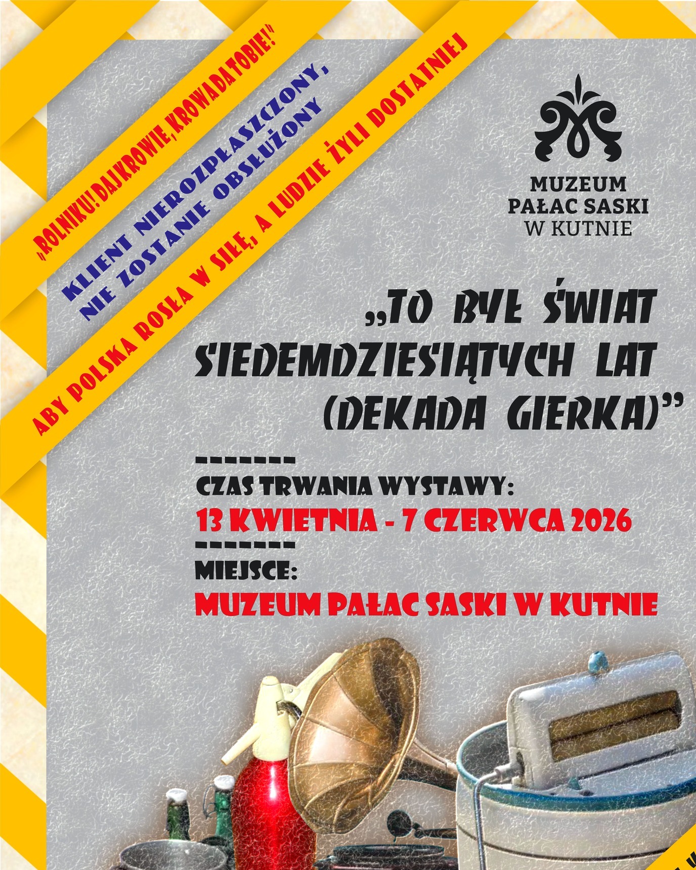 – To propozycja zarówno dla tych, którzy pamiętają lata 70. z własnego doświadczenia, jak i dla młodszych odbiorców, chcących poznać historię poprzez autentyczne przedmioty i klimat minionej epoki – zachęca Grzegorz Skrzynecki, dyrektor Muzeum Pałac Saski w Kutnie.