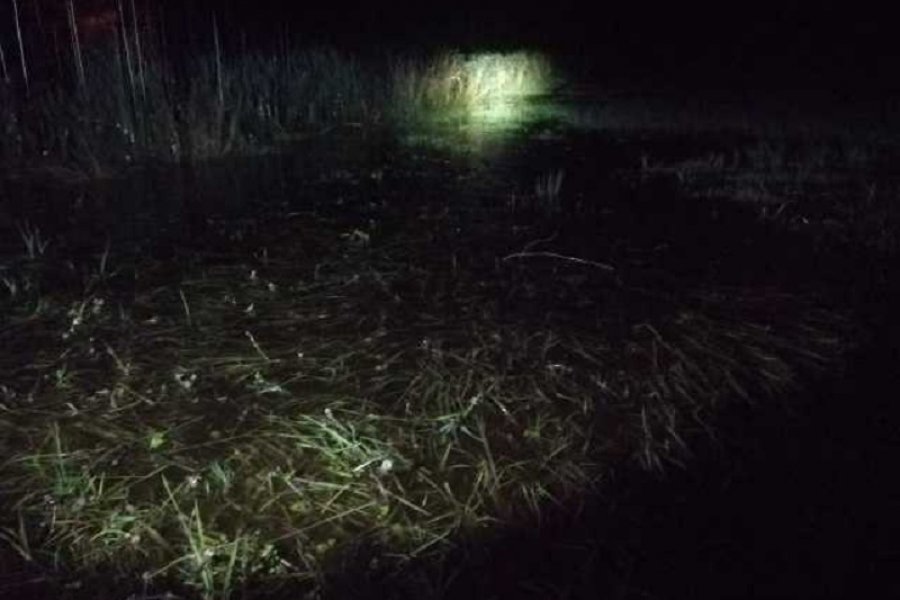 W świetle latarek znaleźli staw oraz łąkę zalaną wodą. W trakcie dokładnego przeczesywania terenu mundurowi zauważyli poruszające się zarośla i kształt przypominający ludzką rękę.