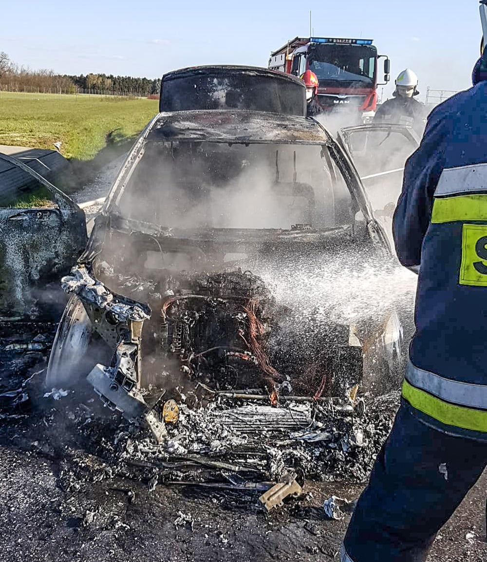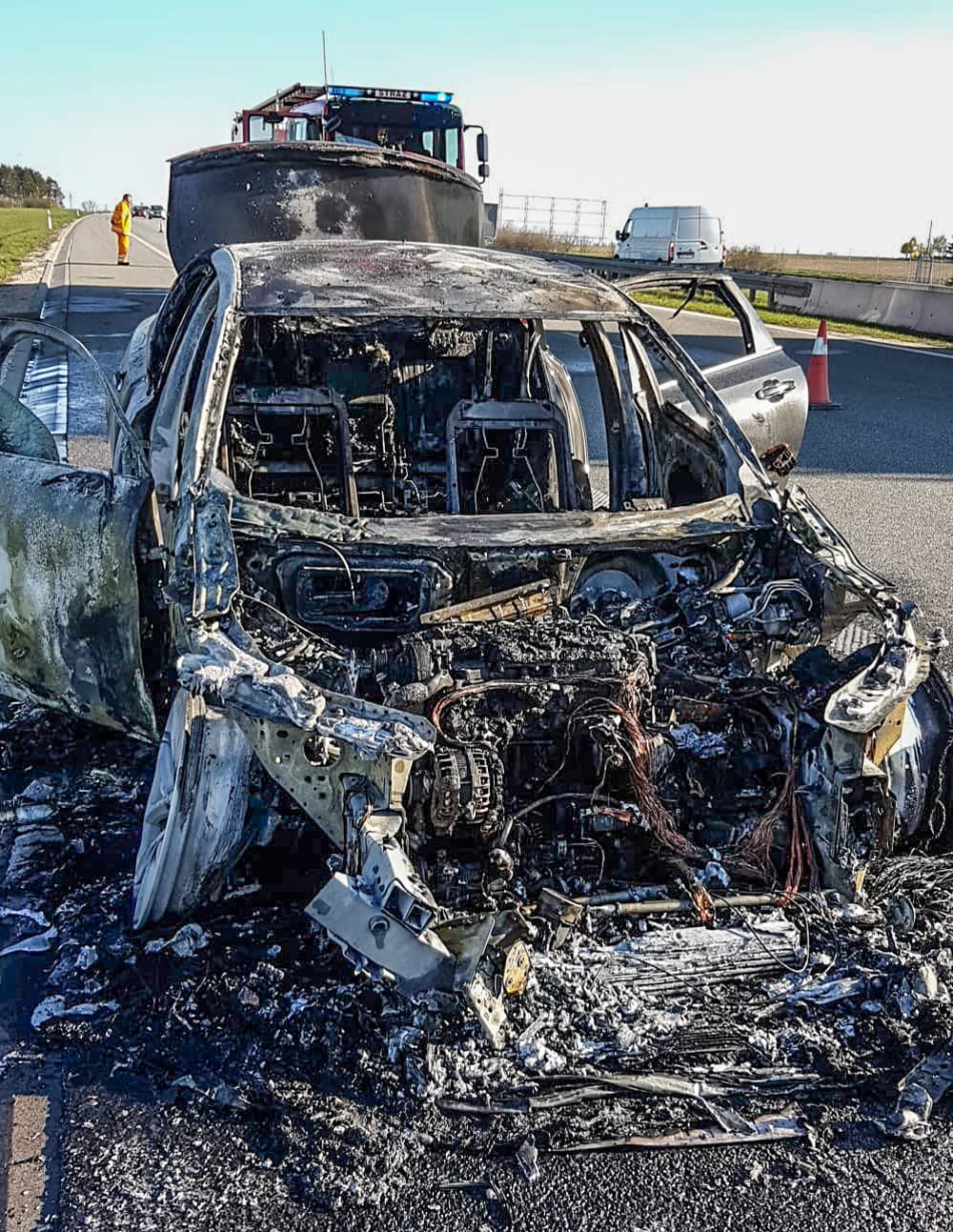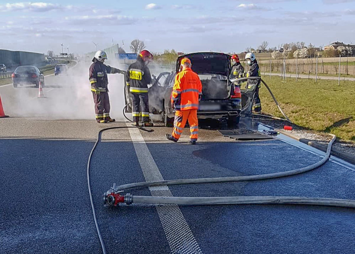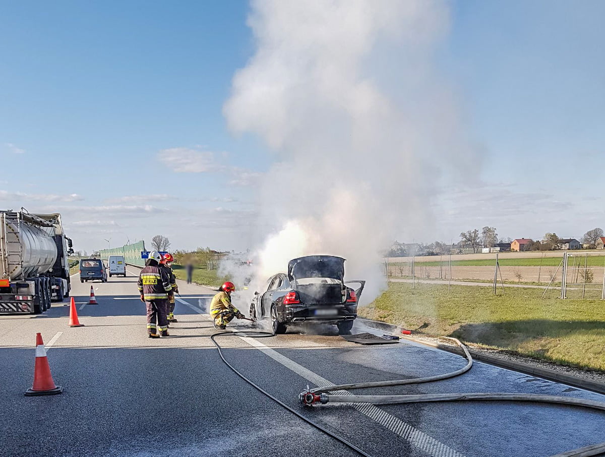 Z niewyjaśnionych na tę chwil przyczyn, na autostradzie A1 w okolicach miejscowości Kaszewy-Kolonia (gm. Krzyżanów) zapaliło się osobowe volvo s90 na krakowskich numerach rejestracyjnych. Na miejsce natychmiast zadysponowano strażaków z OSP Krzyżanów, którzy przystąpili do akcji gaśniczej. Kierowcy muszą liczyć się z utrudnieniami w ruchu, na pasie w kierunku Gdańska.