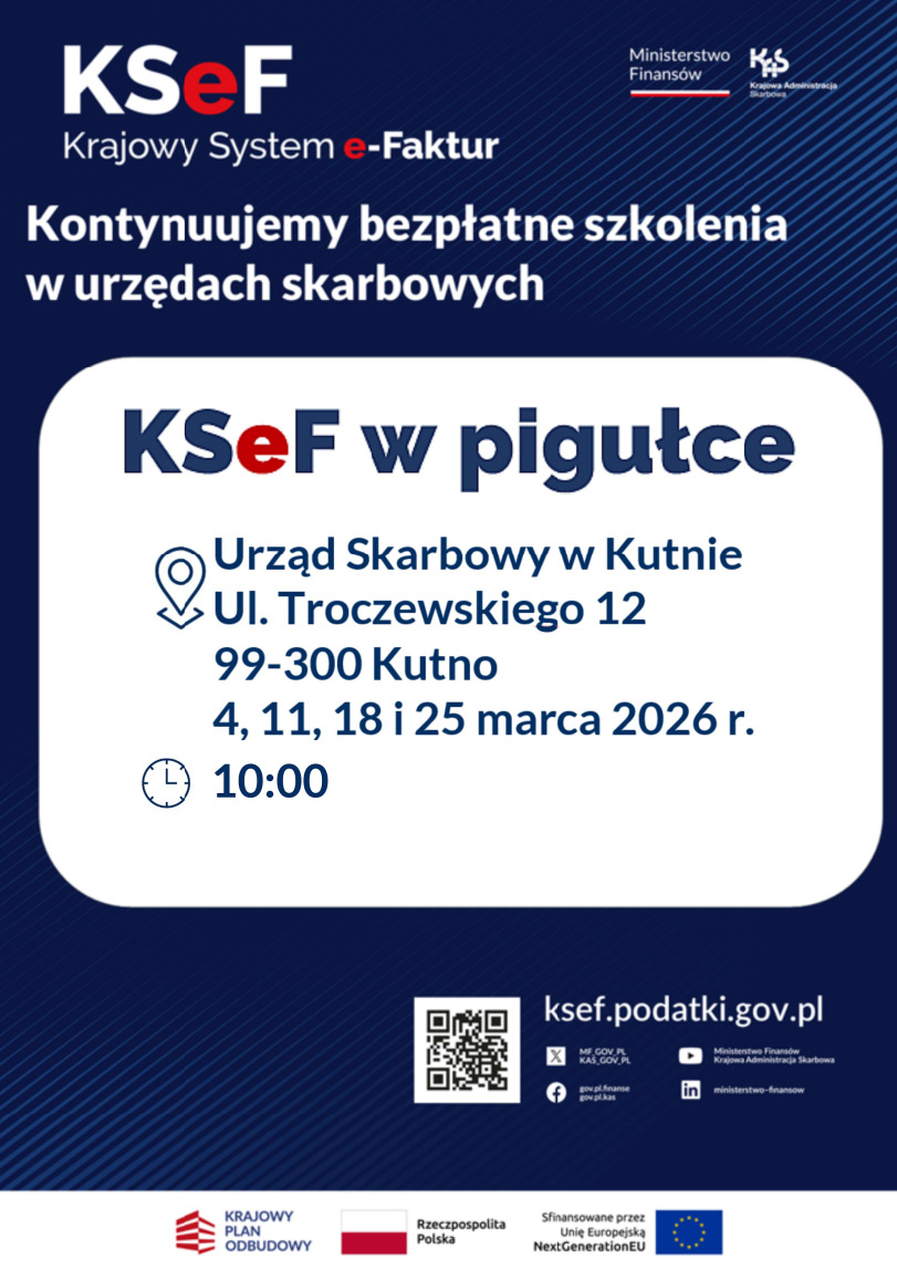 Urząd Skarbowy w Kutnie zaprasza przedsiębiorców na bezpłatne szkolenie pod hasłem „KSeF w pigułce”. Wydarzenia będą odbywać się cyklicznie przez cały marzec.