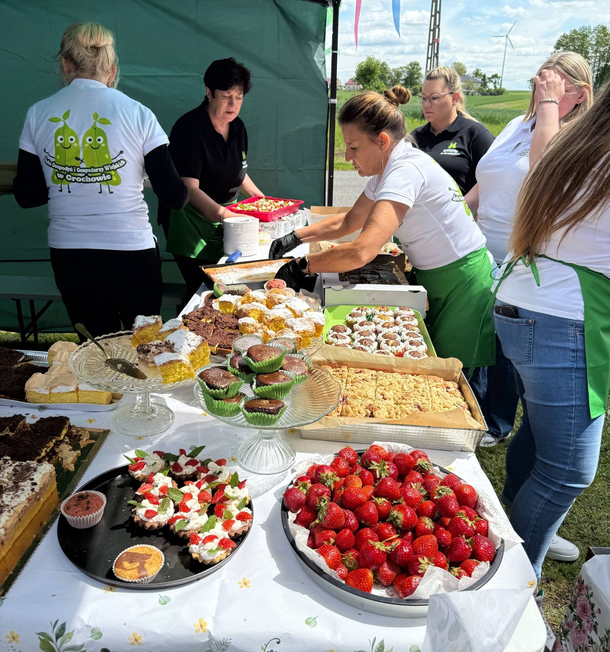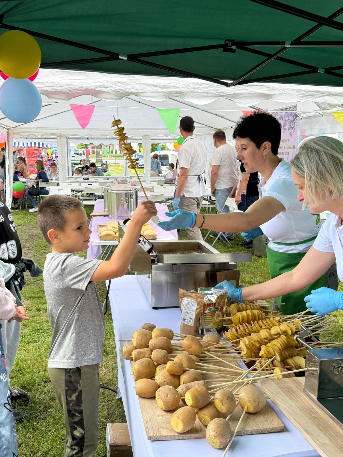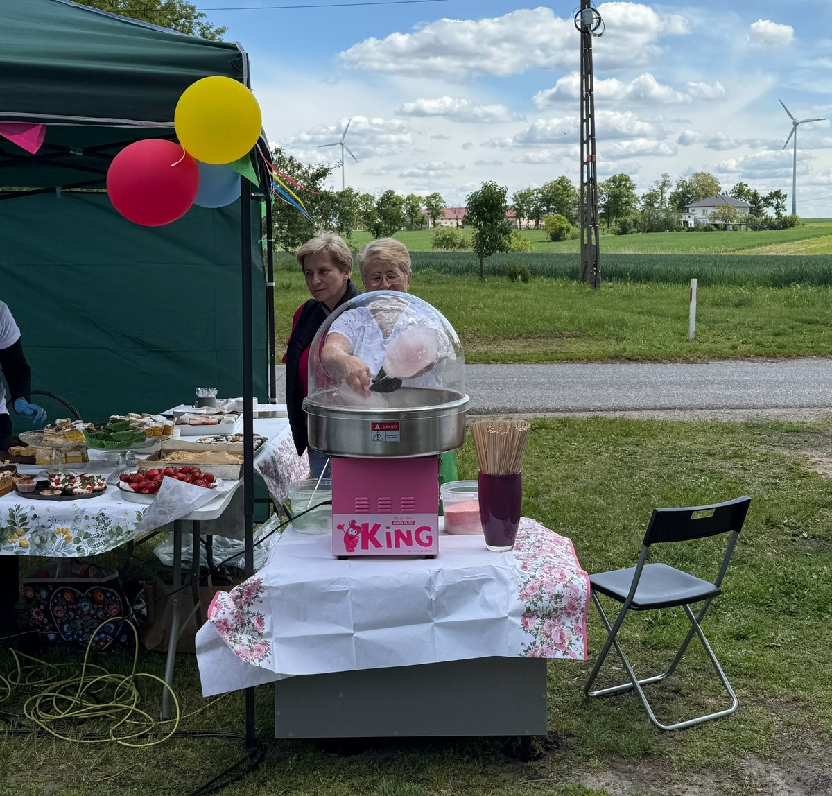 Nie zabrakło również kulinarnych pyszności. Aromatyczny grill, popcorn, wata cukrowa i kręcone ziemniaki kusiły zapachem i smakiem. Stoisko lokalnych Kół Gospodyń i Gospodarzy oferowało domowe przysmaki, które rozchodziły się w mgnieniu oka.