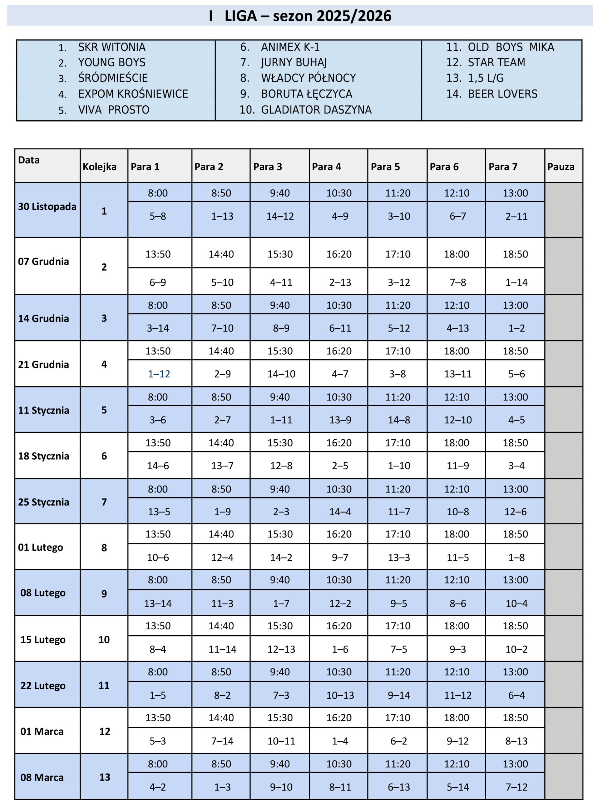 SKR Witonia, Young Boys, Śródmieście, Expom Krośniewice, Viva Prosto, Animex K-1, Jurny Buhaj, Władcy Północy, Boruta Łęczyca, Gladiator Daszyna, Old Boys Mika, Star Team, 1,5 L/G, Beer Lovers.